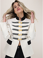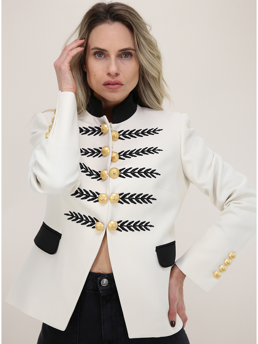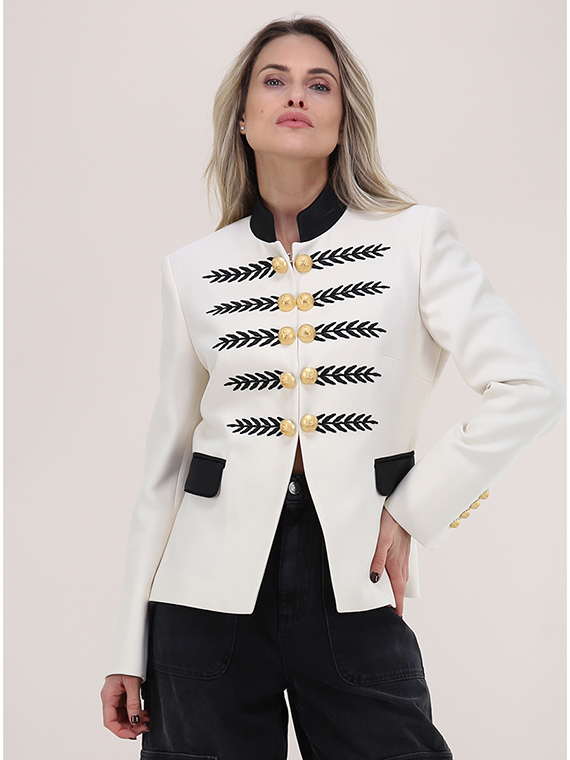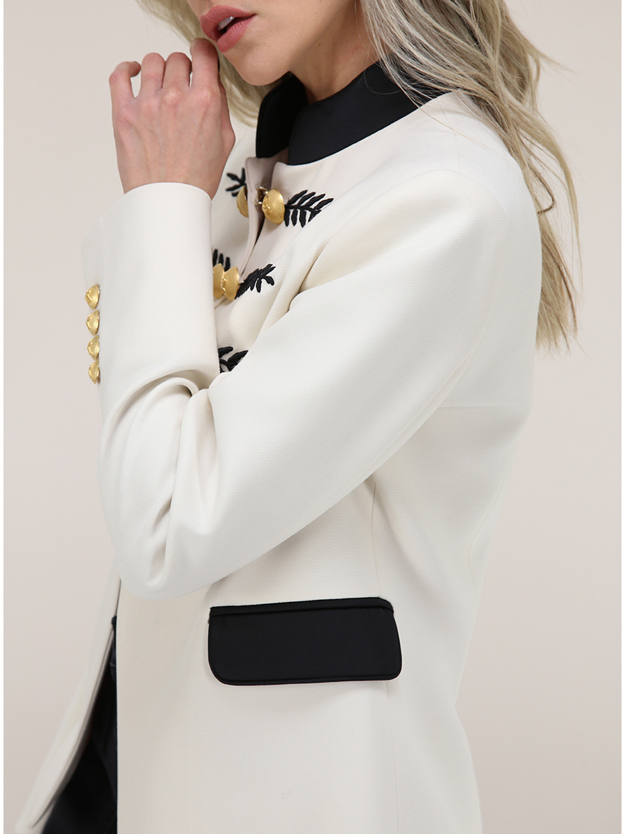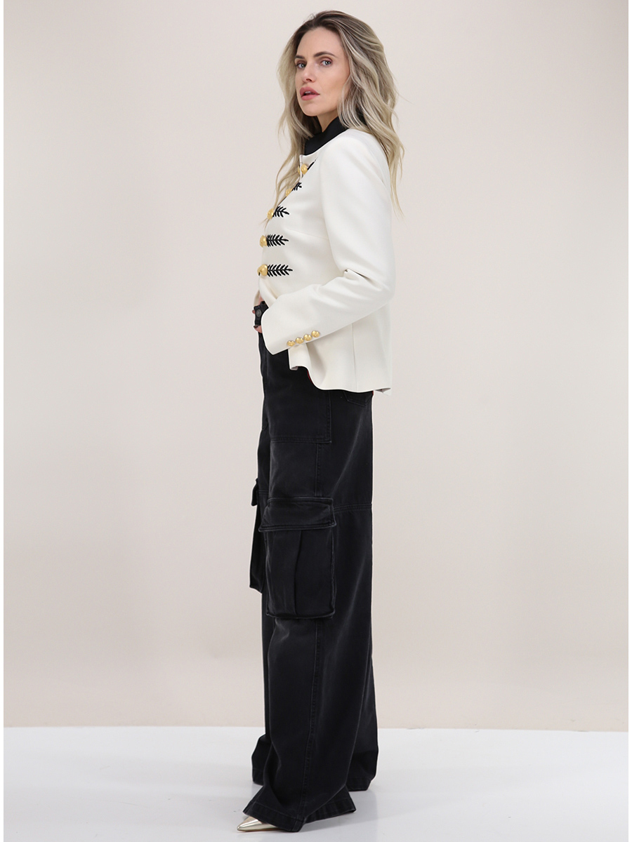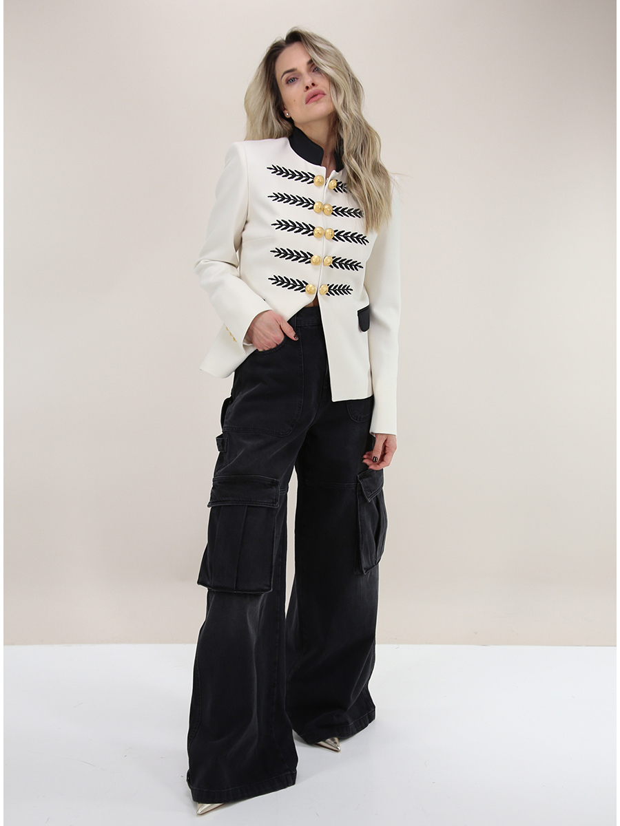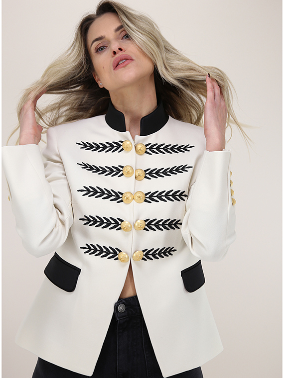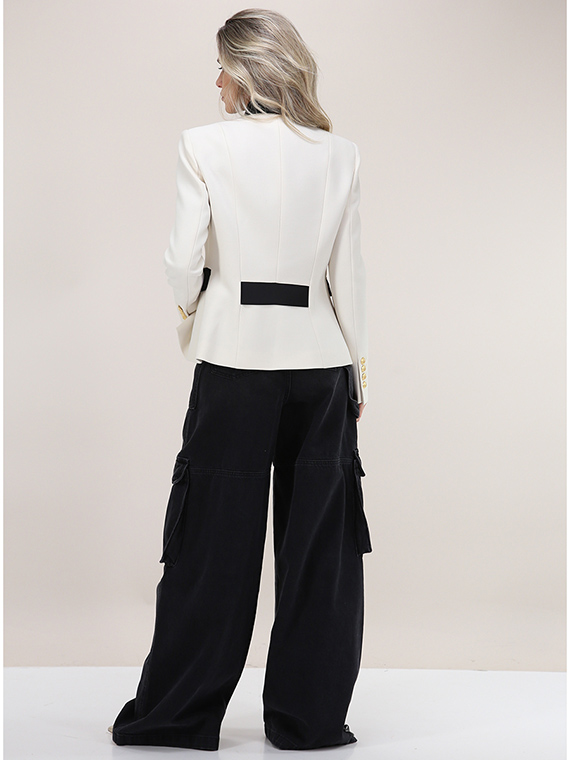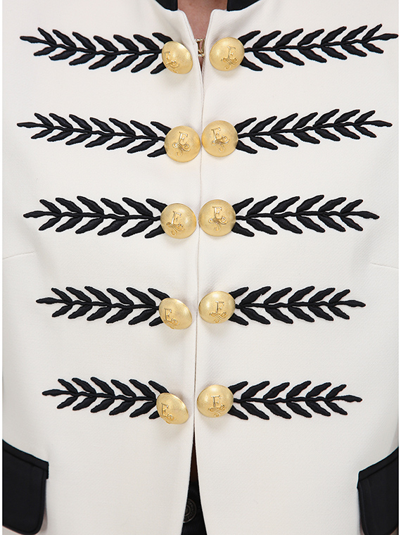 : Logo, Contrasting applications, Gold details, Faux pockets