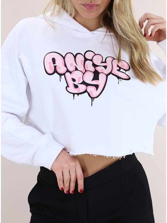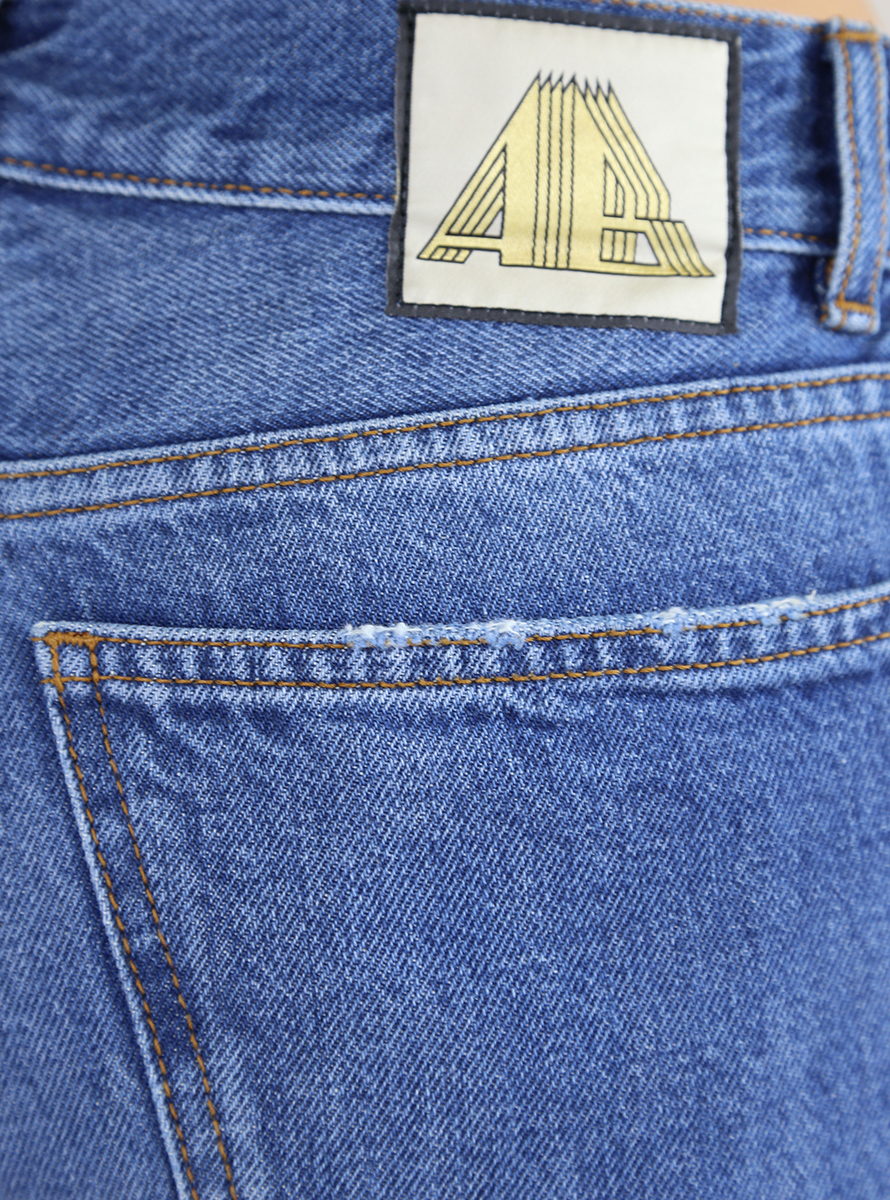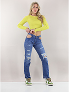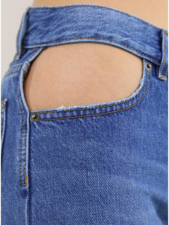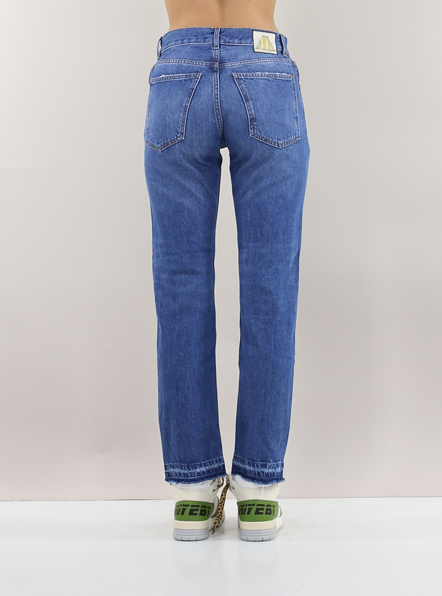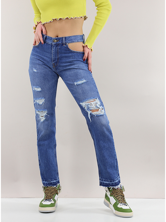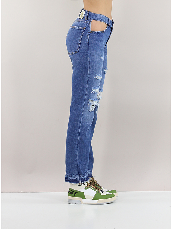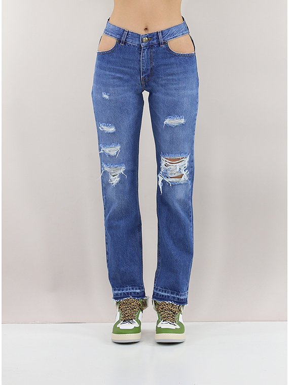 Aniye By jeans in cotton denim. Regular life. Frontal portholes and frontal tears. Raw cut bottom. The model is 1.70 cm tall and wears size 26.