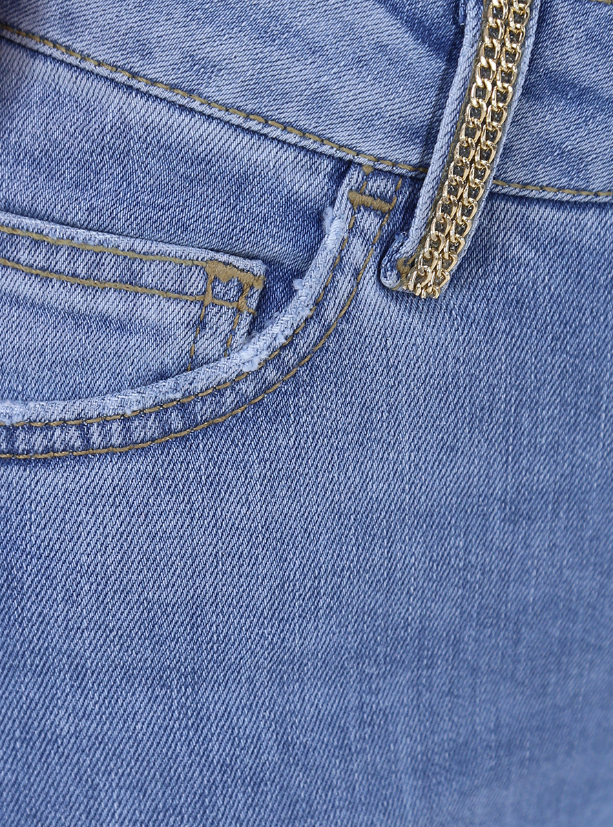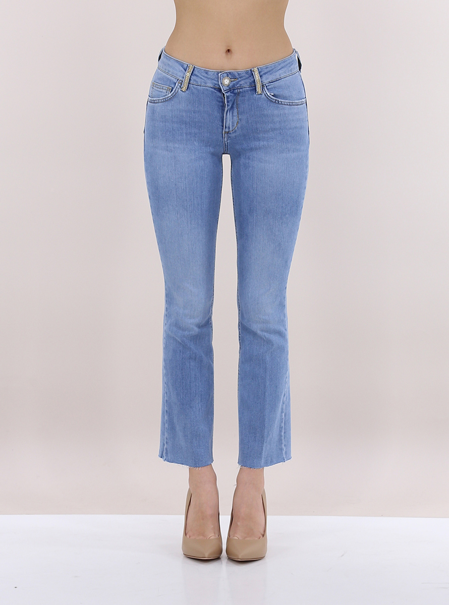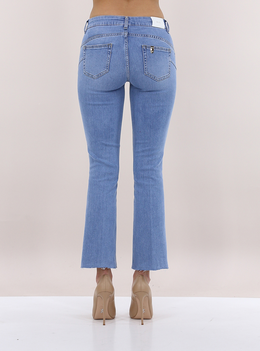Liu.jo bottom up trumpet jeans in stretch cotton denim. Slim fit. Jewel closure button. The model is 1.75 tall and wears size 26.