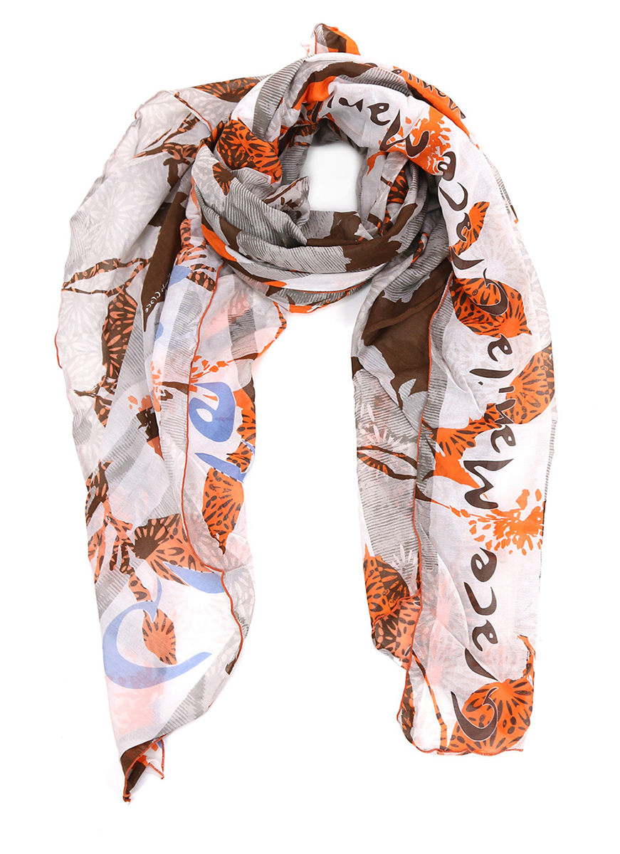 Sciarpa in cotone e seta. Fantasia astratta. Misure 142 x 142 cm.