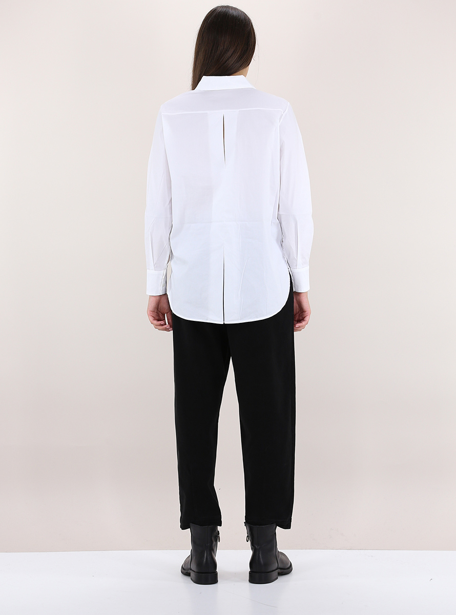 Tandem soft shirt in stretch cotton blend. Long sleeves and classic neck. Back slits and front closure buttons. The model is 1.75 tall and wears size 40.