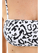 Aniye By MAKU swimsuit in lycra. Bandeau top with double straps and regular bottom. Maku white logoed pattern. The model is 1.68 tall and wears size S.