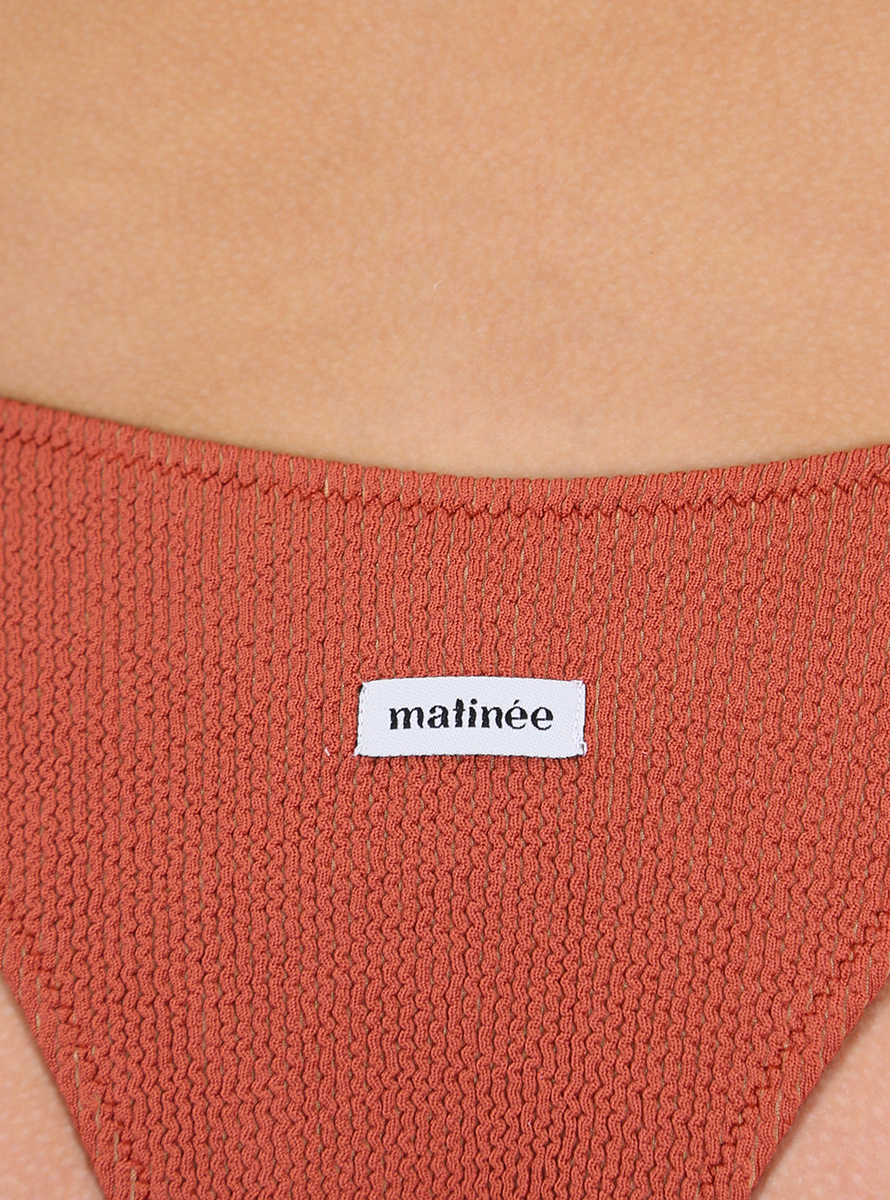 Matinèe swimsuit in triangle lycra with removable cups. Brazilian briefs. The model is 1.70 tall and wears size S.