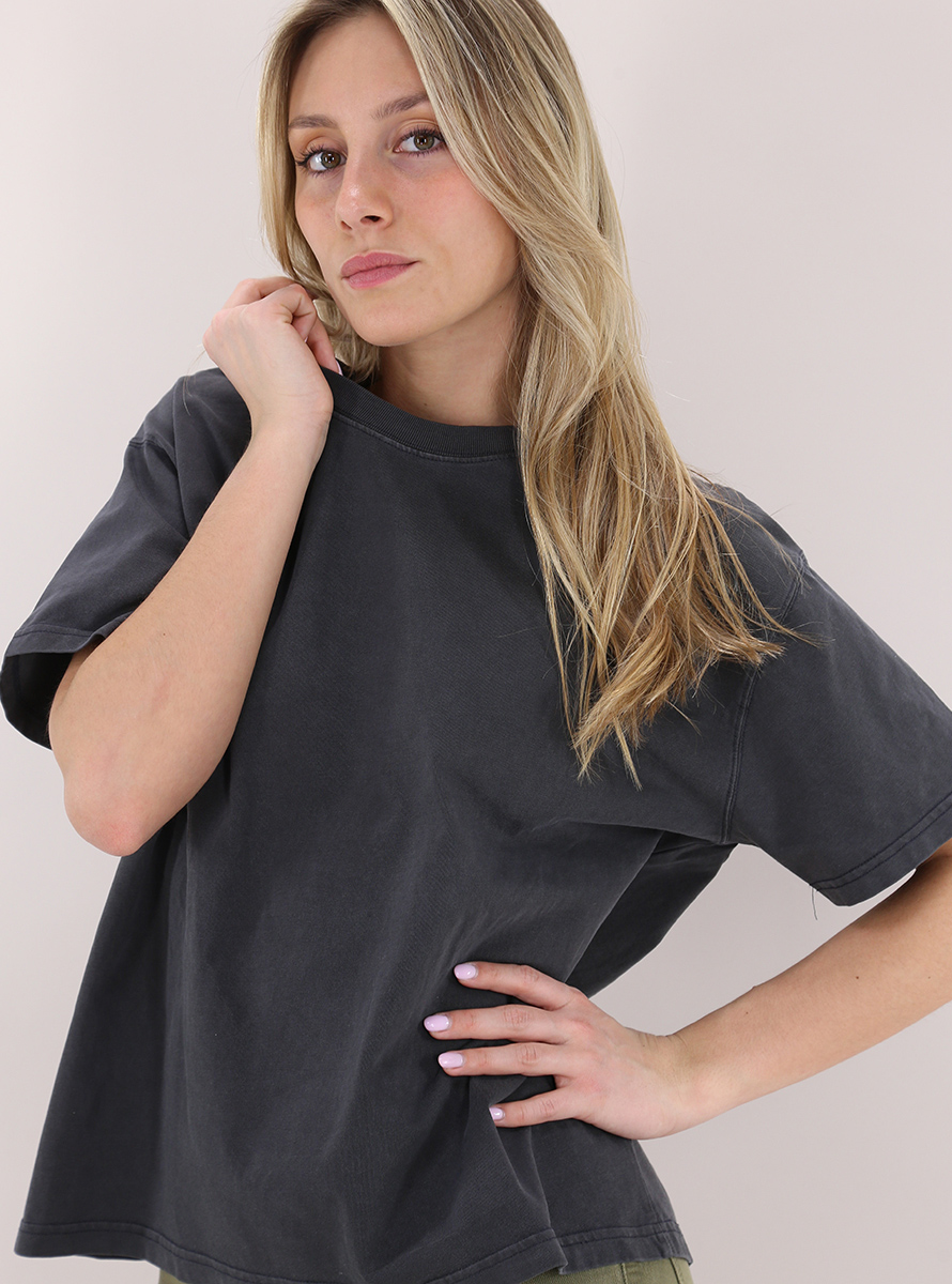 American Vintage cotton t-shirt with short sleeves and round neck. The model is 1.70 tall and wears size S.