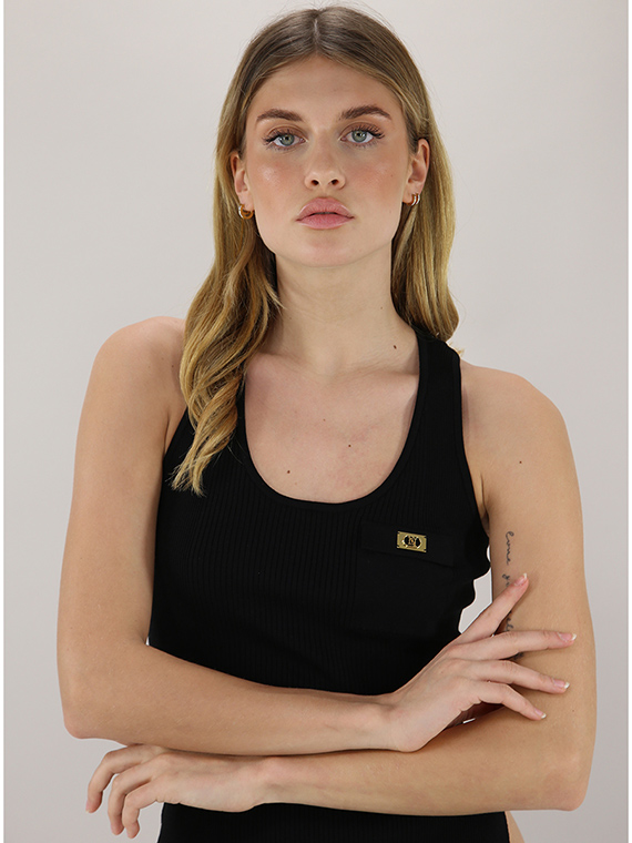 Applications: Slits at the bottom, Logo, Contrasting applications, Gold details, Pockets