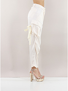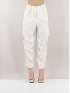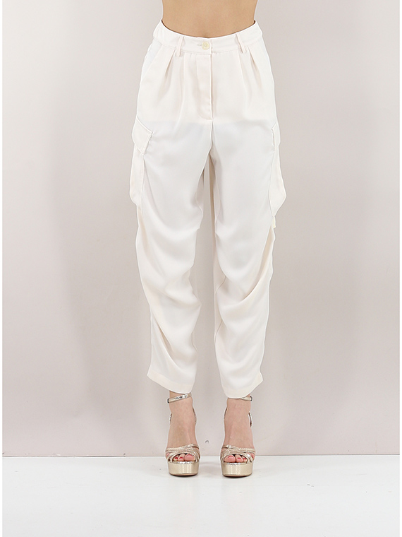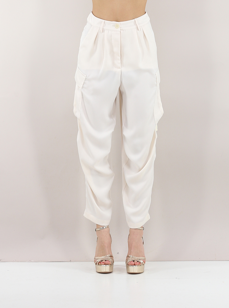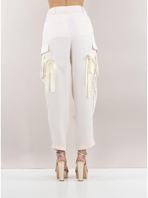 Aniye By high-waisted cargo trousers with slash and welt pockets on the back. The model is 1.70 tall and wears size 38.