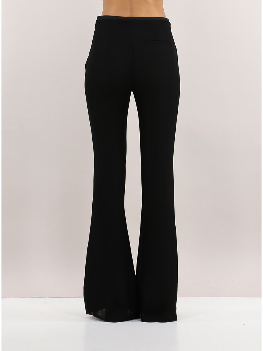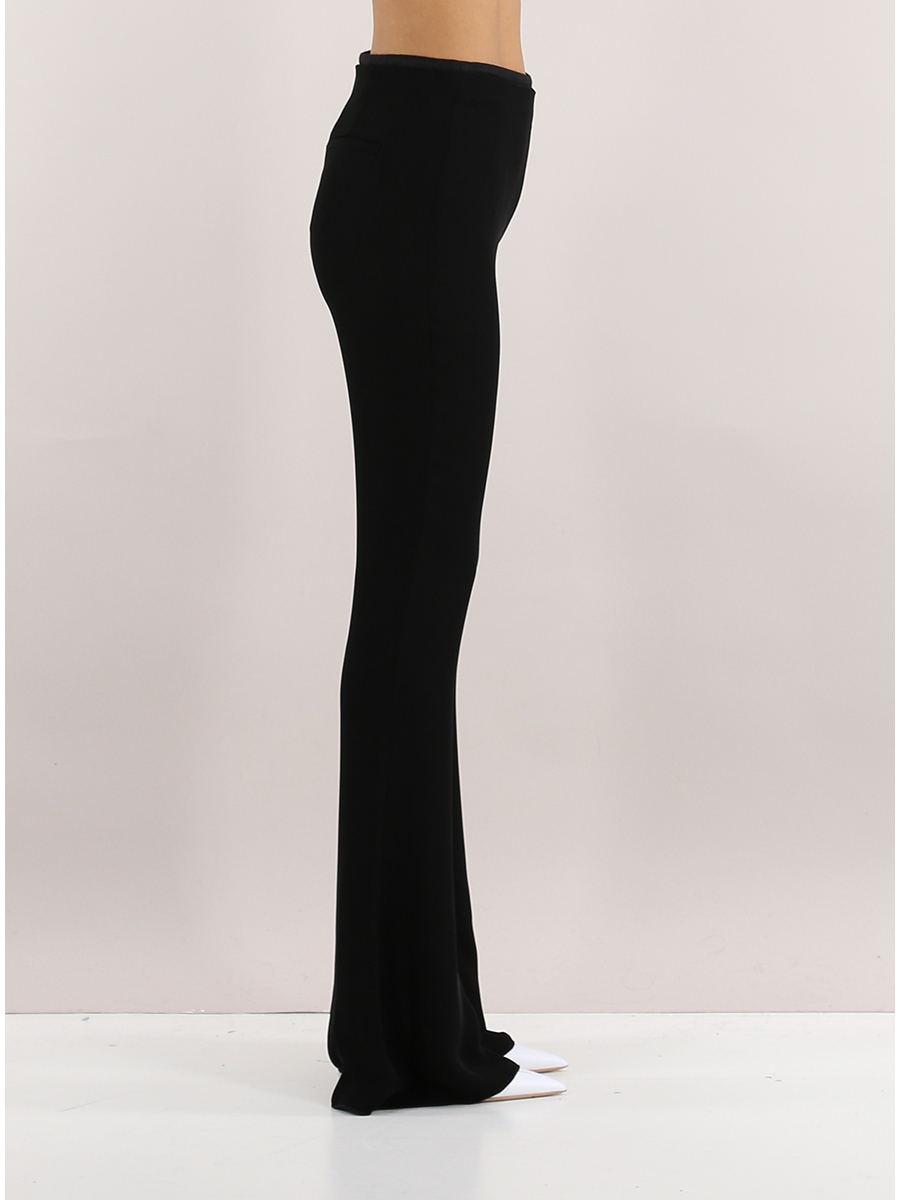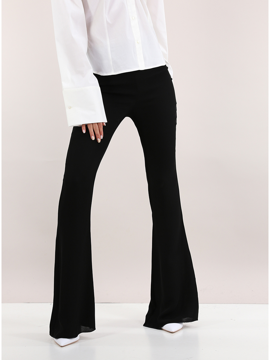 Malloni flared trousers in viscose. Contrasting cotton waistband. Side zip closure. The model is 1.80 cm tall and wears size 40.