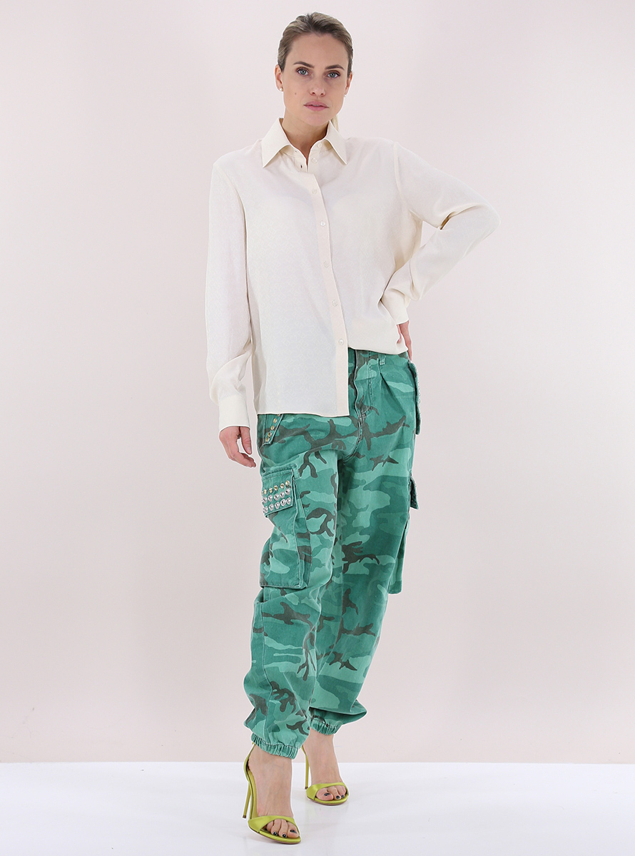 : Waist pinces, Logo, Pattern, Contrasting applications, Gold details