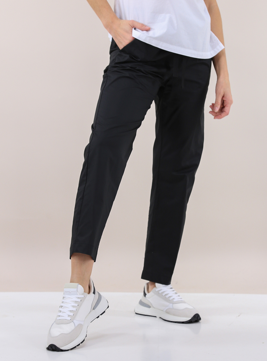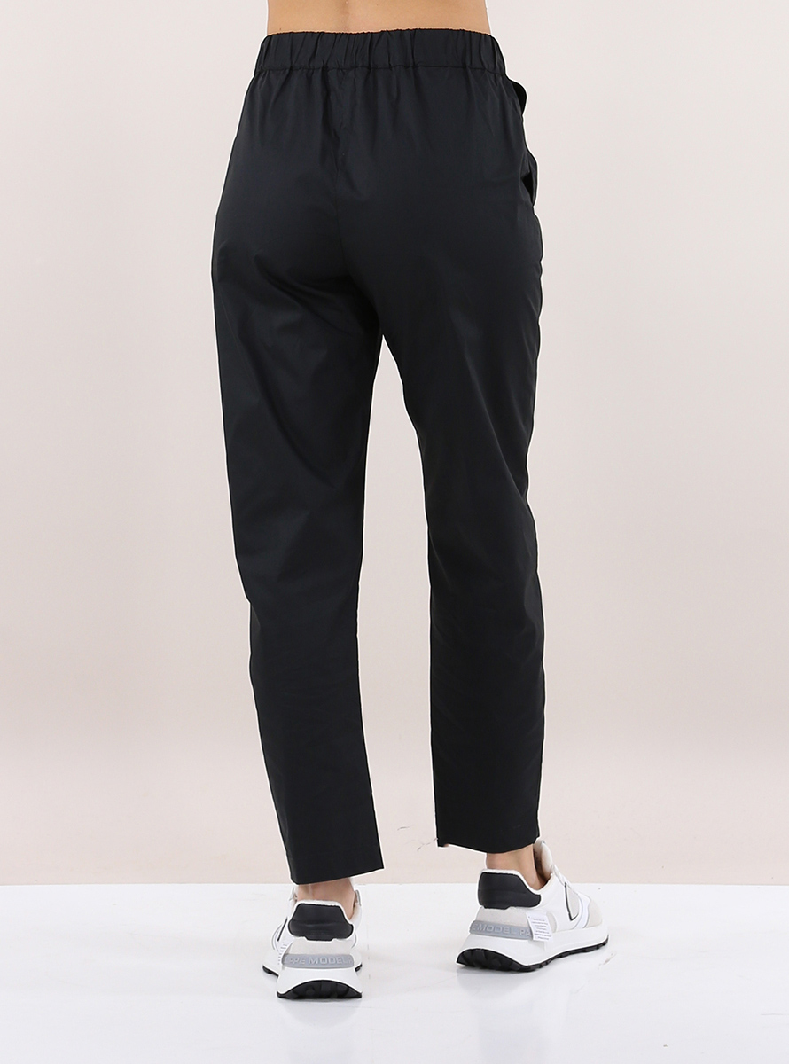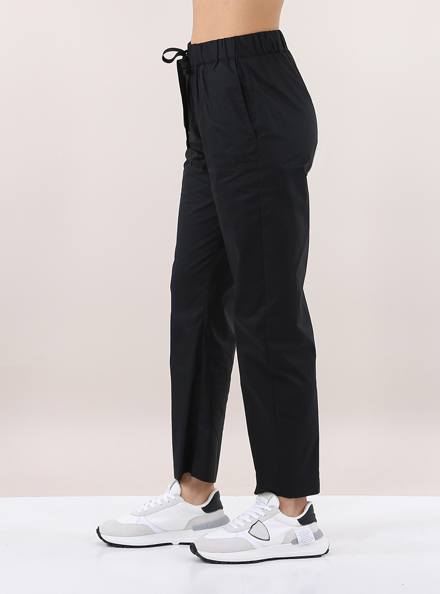 Soft Semicouture trousers in cotton. High waist with elastic and drawstring. American pockets. The model is 1.68 tall and wears size 40.