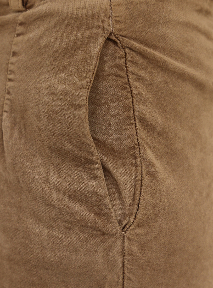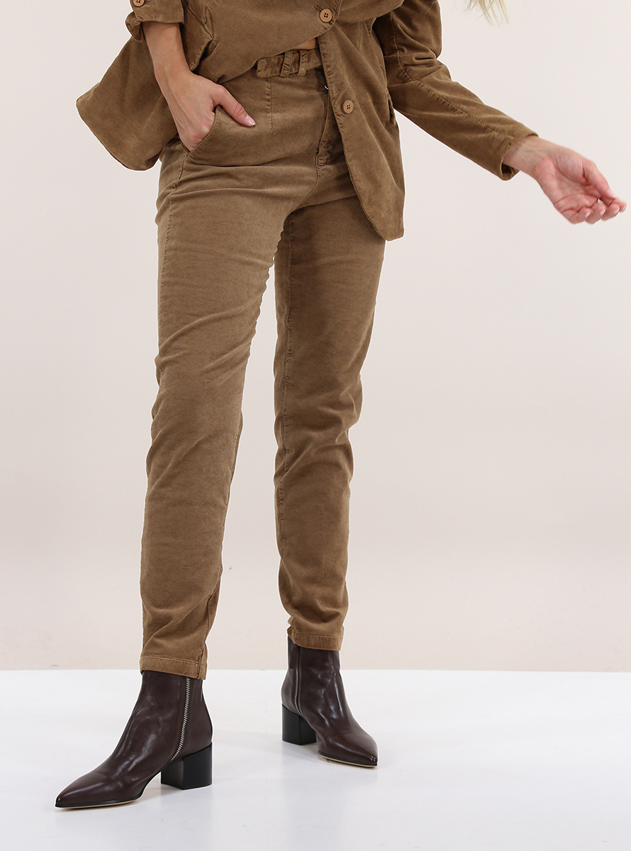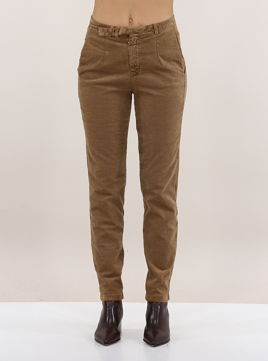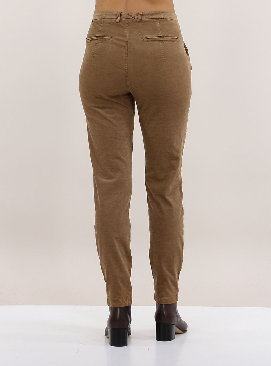 Tandem trousers in stretch cotton velvet. High waist and regular fit. Pouch and welt pockets on the back. The model is 1.68 tall and wears size 38.