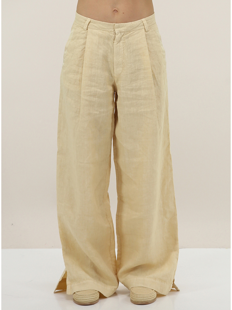 : Slits at the bottom, Waist pinces, Logo, Contrasting applications