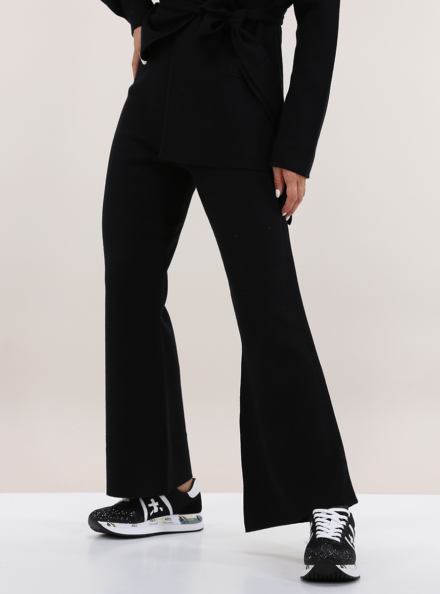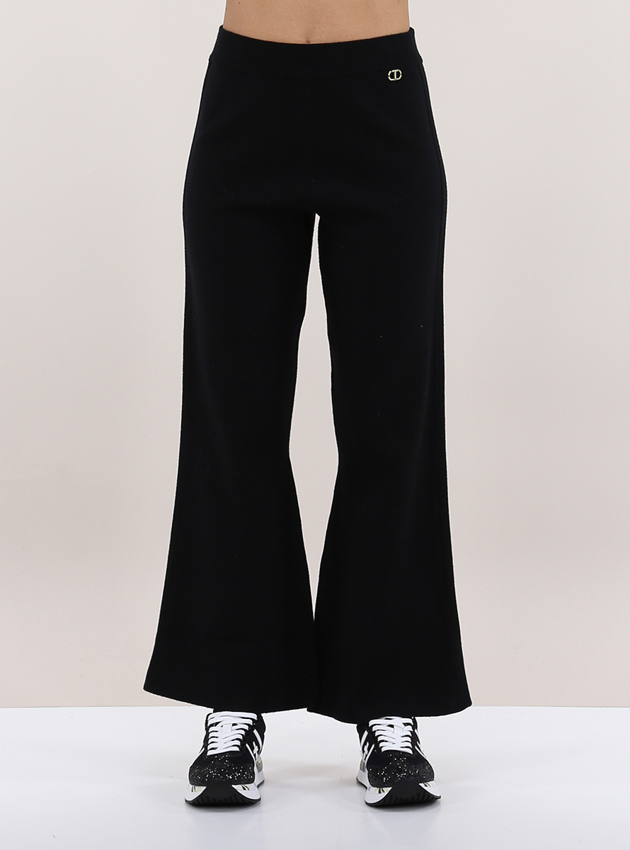 Twin SET flared trousers in viscose blend. High waist with elastic. The model is 1.67 tall and wears size XS.