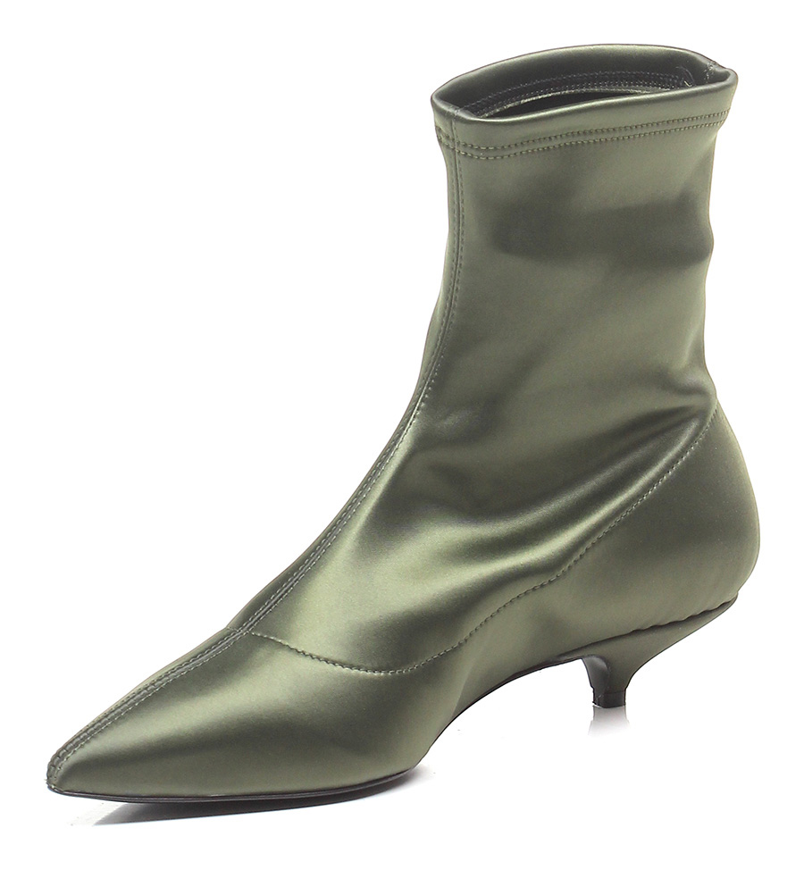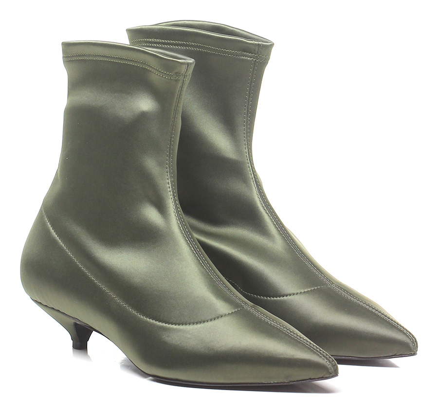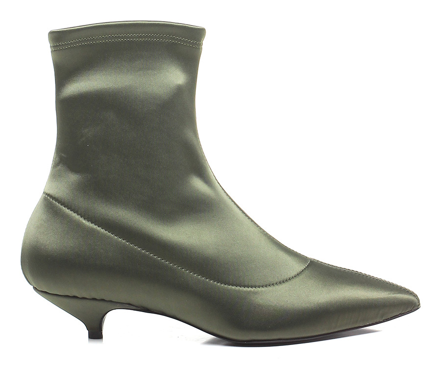 Ankle boot in fabric with elasticated leg and leather sole. 40 heel.
