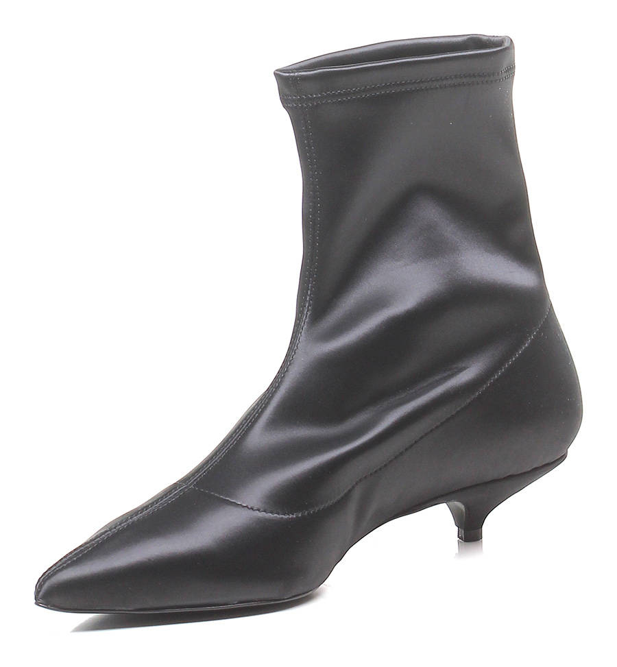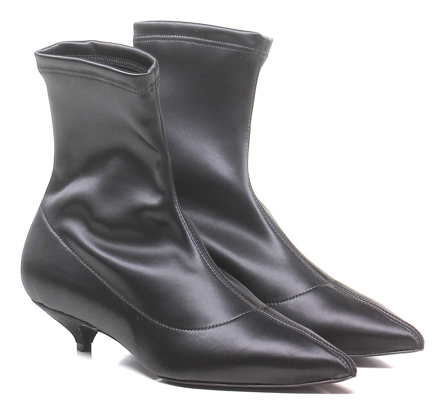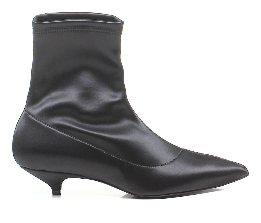 Ankle boot in fabric with elasticated leg and leather sole. 40 heel.