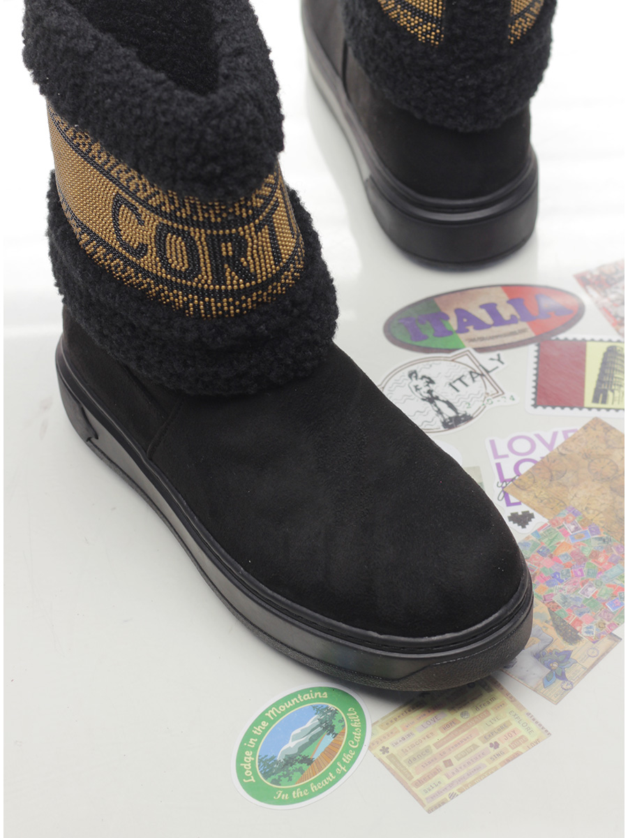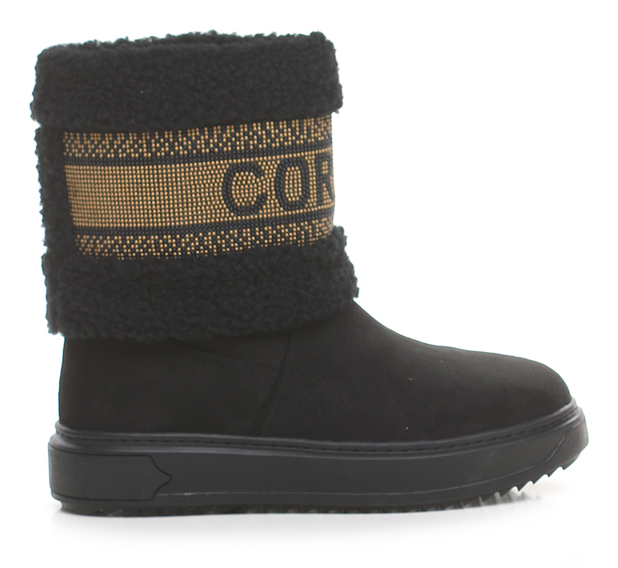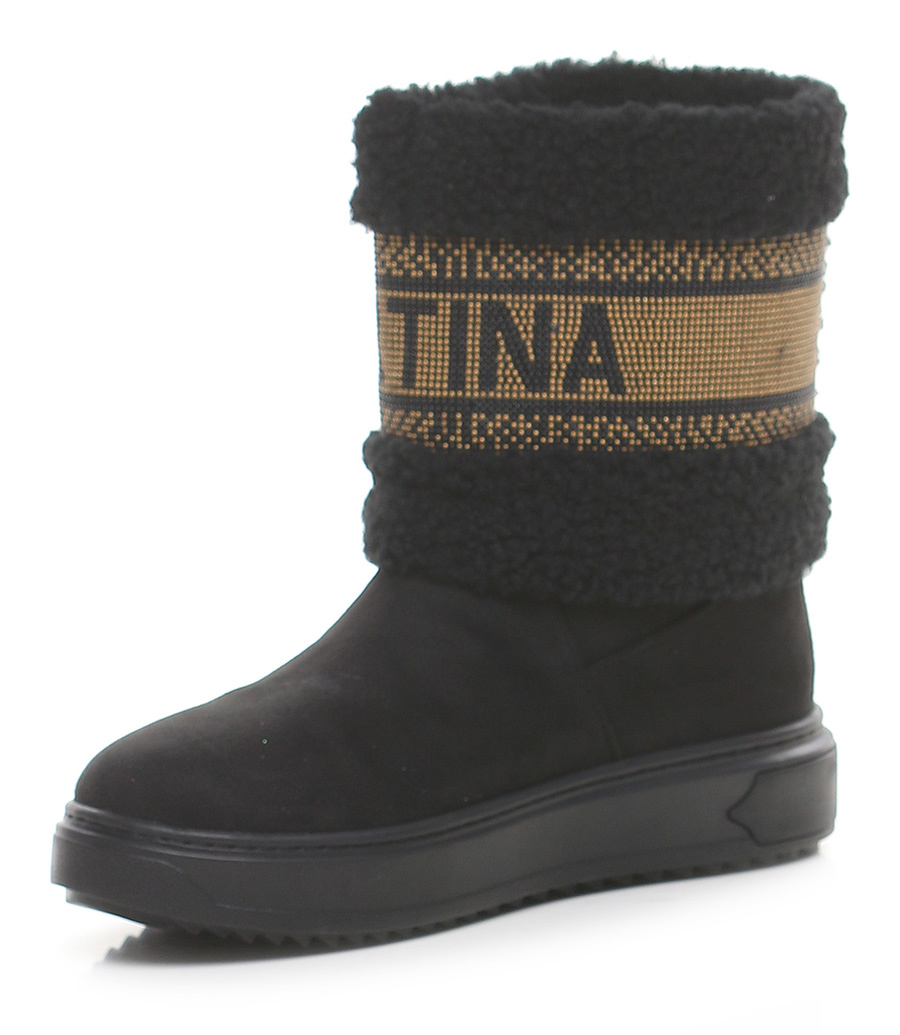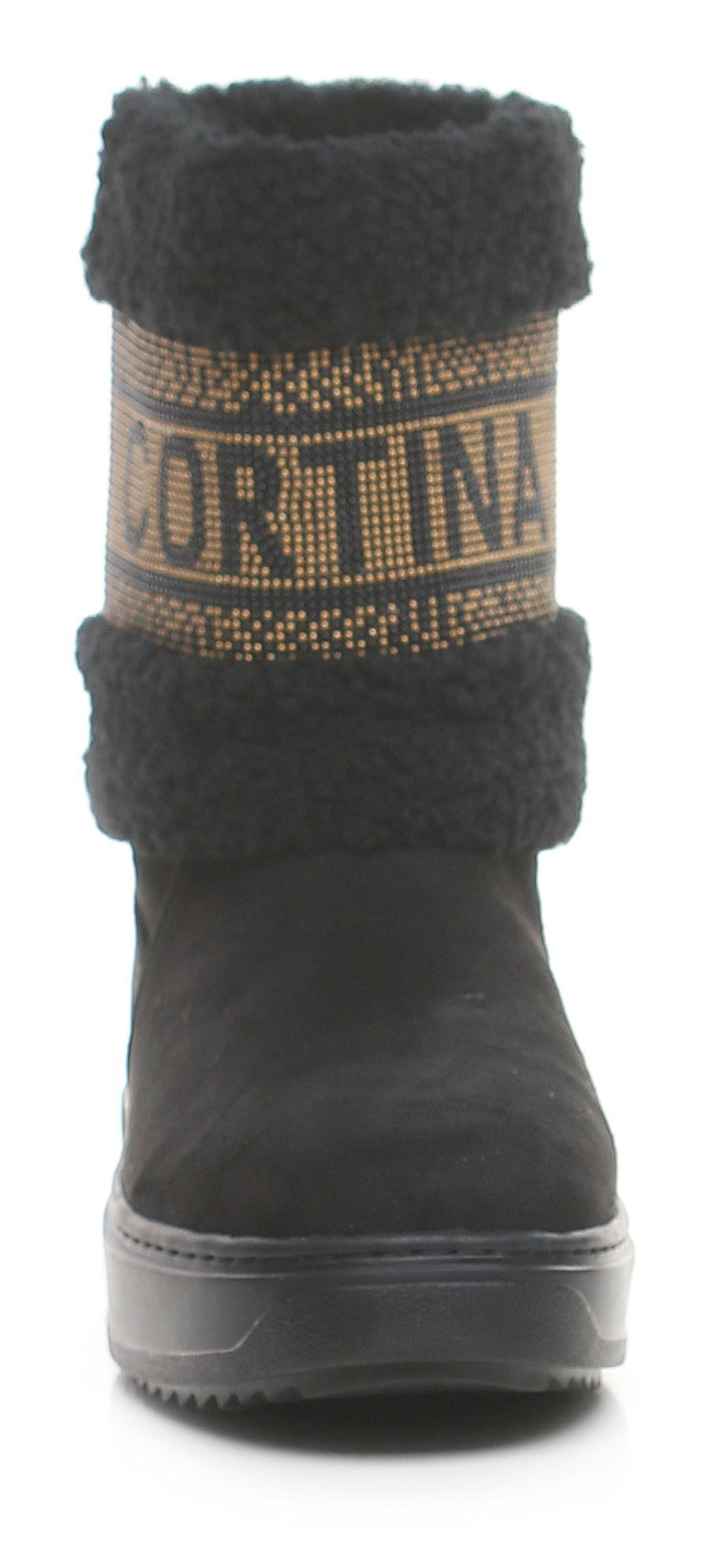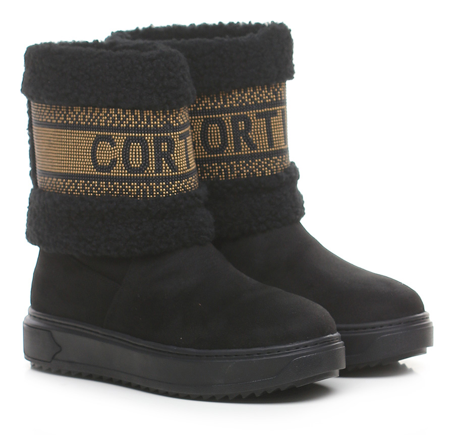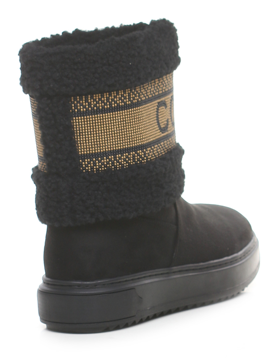 Suede-effect faux leather ankle boot lined in fake fur with beads on the shaft. Rubber sole. 35mm heel height, 30mm platform with 5mm ledge.