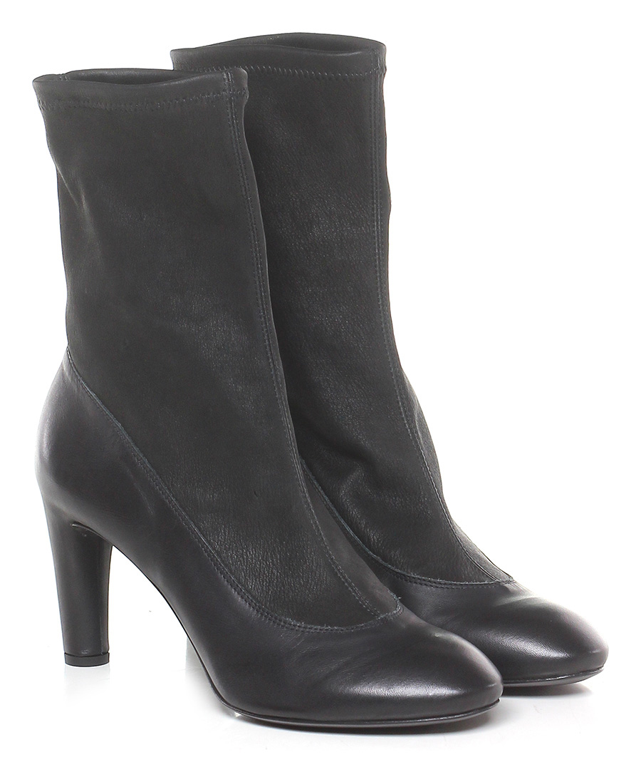 Ankle boot in leather and stretch leather with elasticated leg and leather sole. 90 heel.