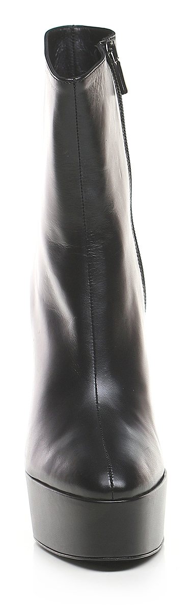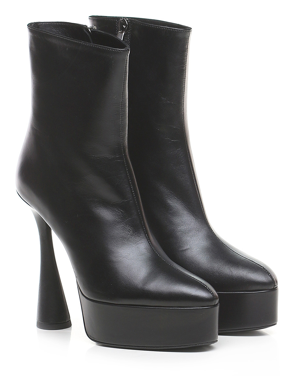 Leather ankle boot with side zip and leather sole. Heel height 130mm, platform 40mm with 90mm ledge.