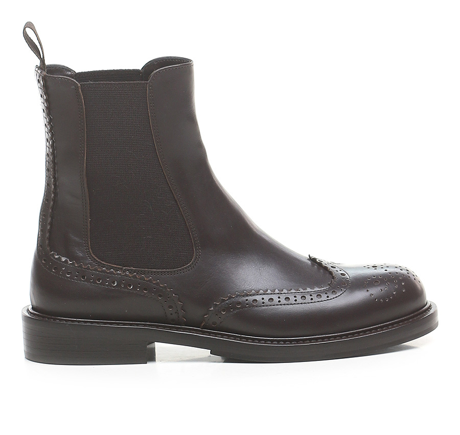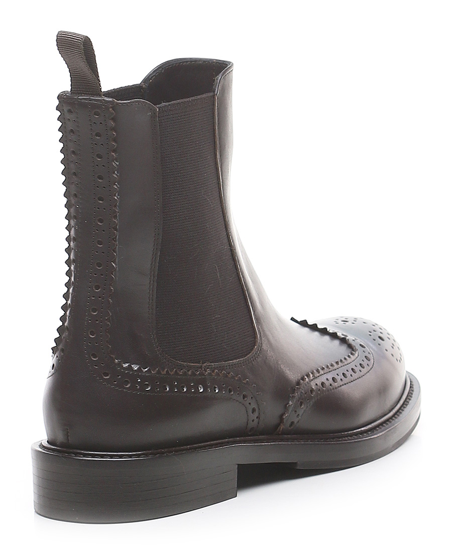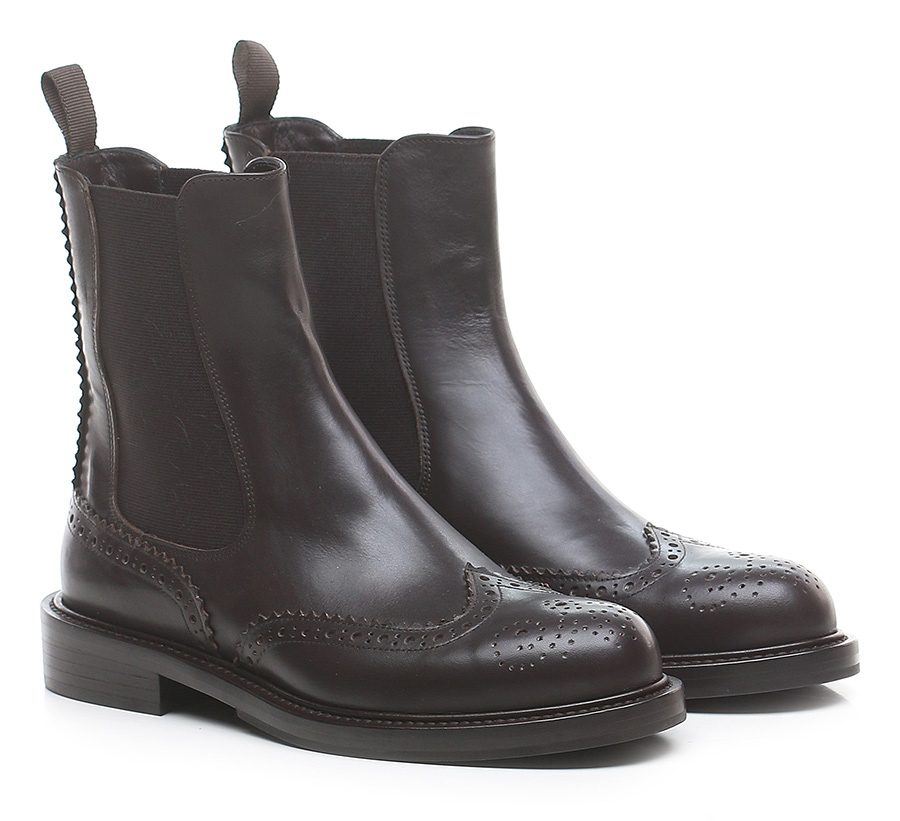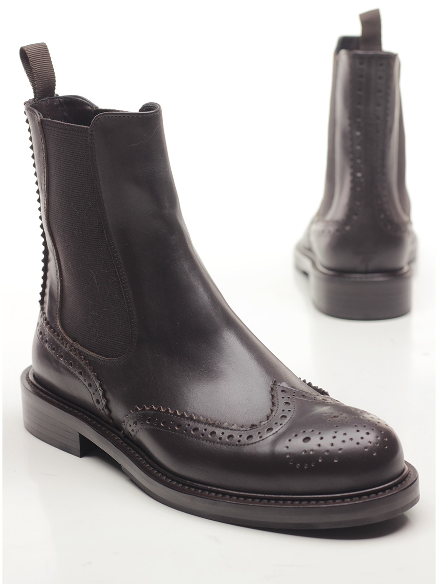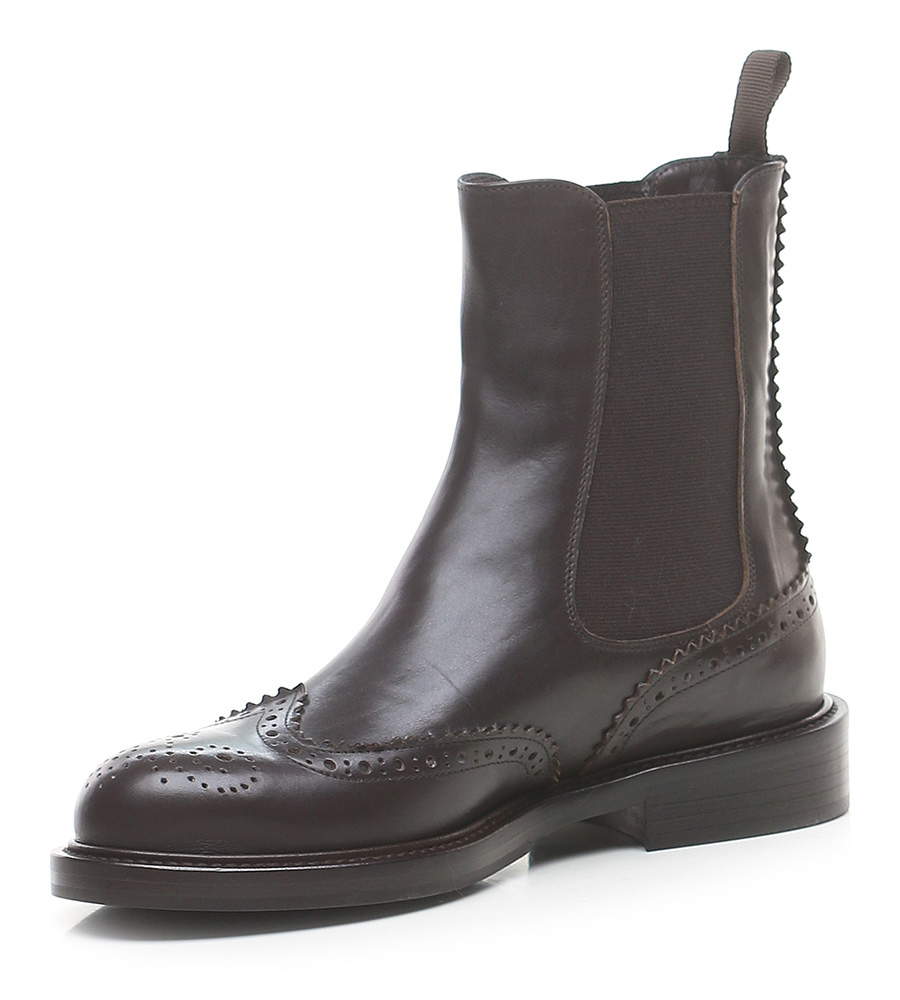 Leather ankle boot with side elasticated inserts and leather and rubber sole. Heel height 30mm.