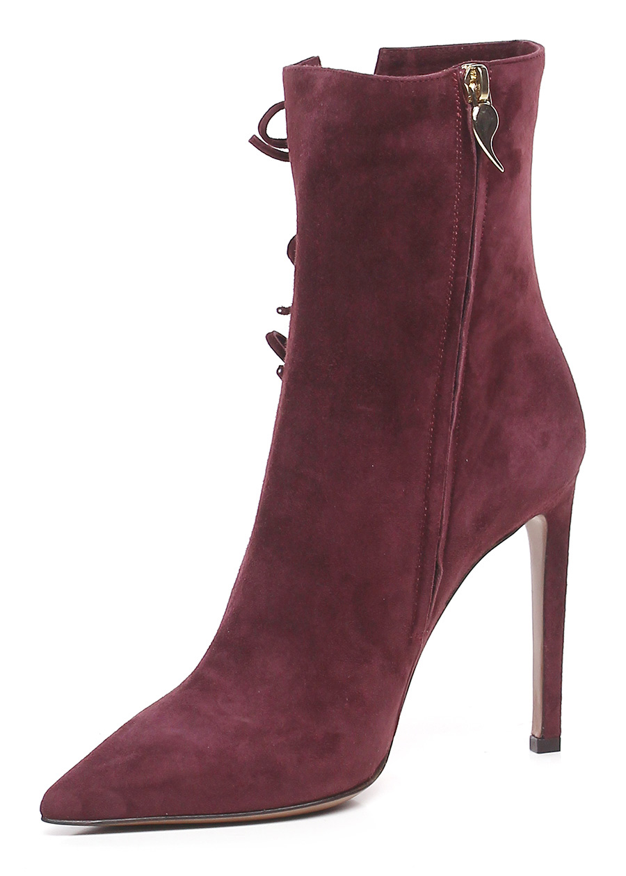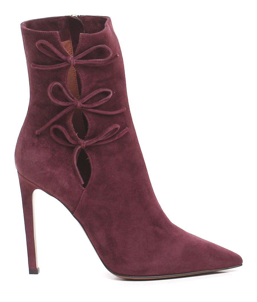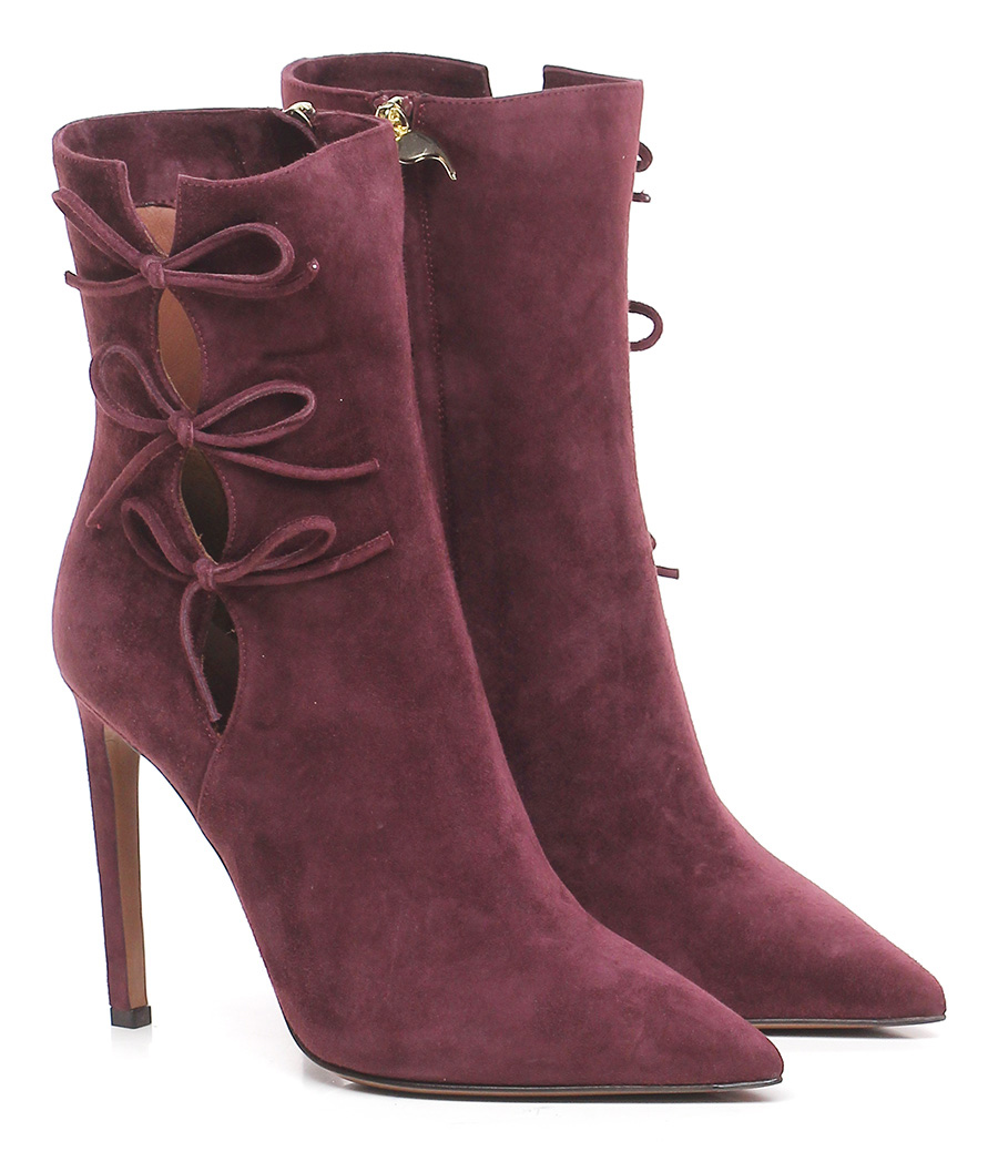 Suede ankle boot with internal side zip, leather and rubber sole. 110 heel.