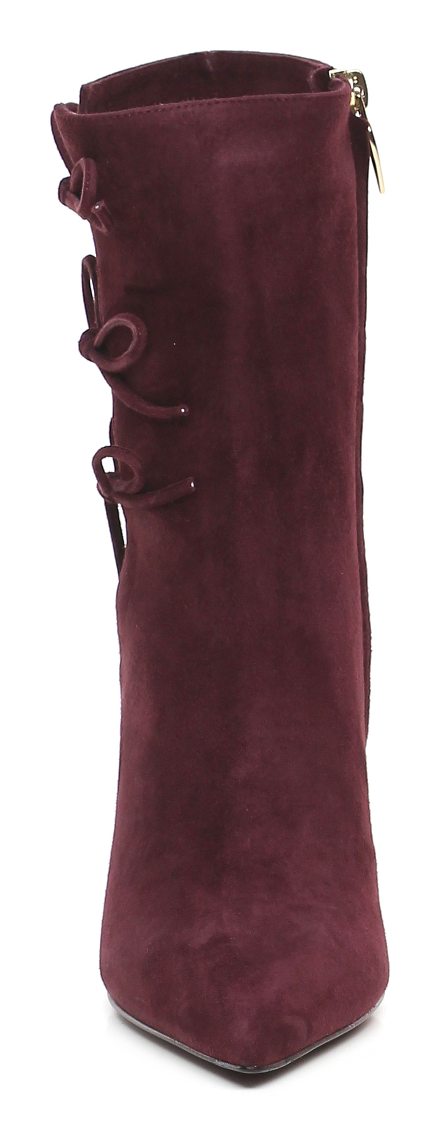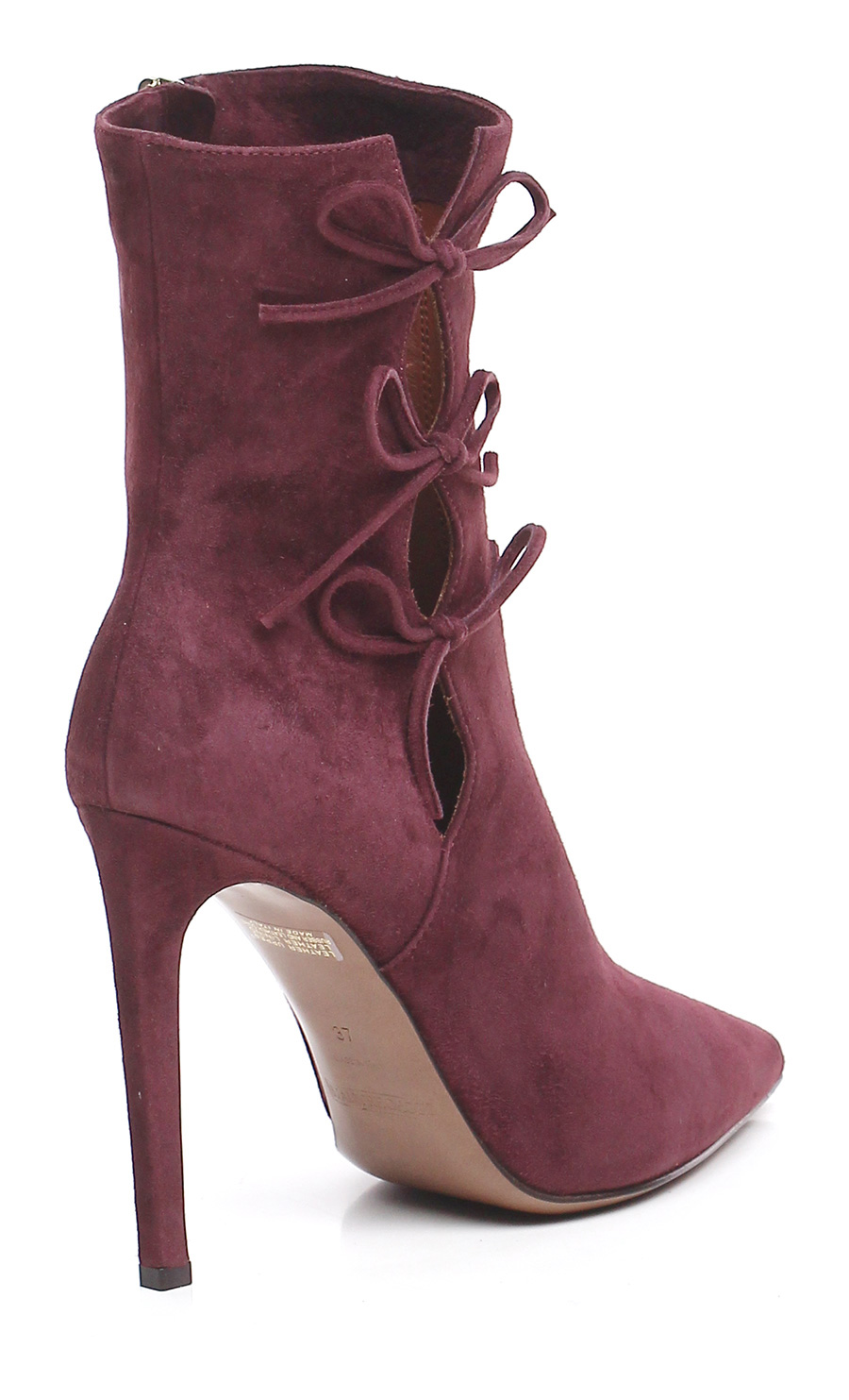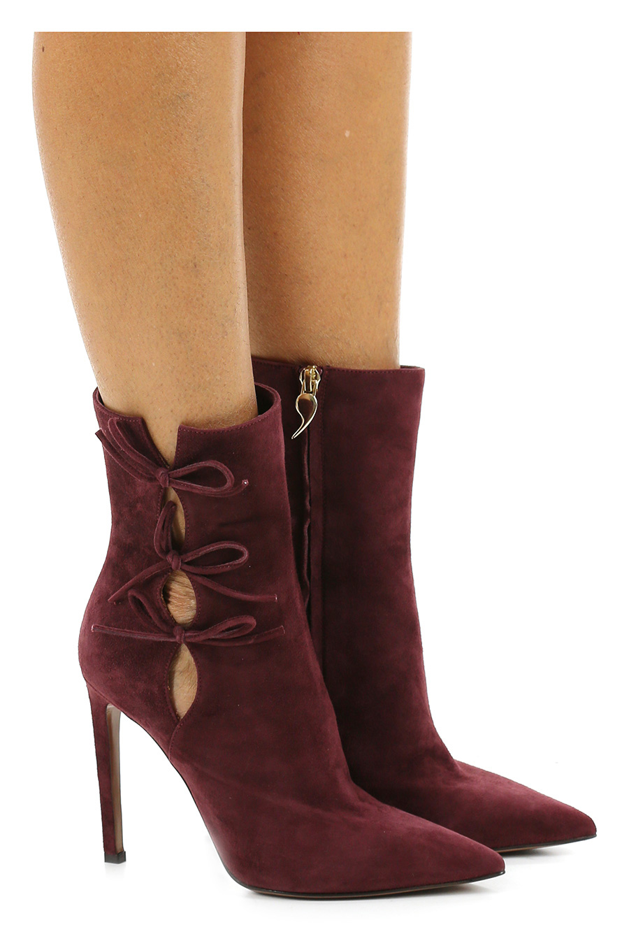 Suede ankle boot with internal side zip, leather and rubber sole. 110 heel.