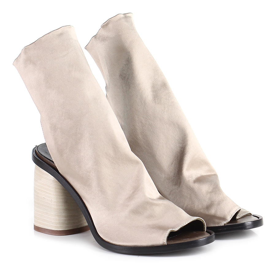 Ankle boot in eco leather with open heel and leather sole, 90 heel. Open toe.