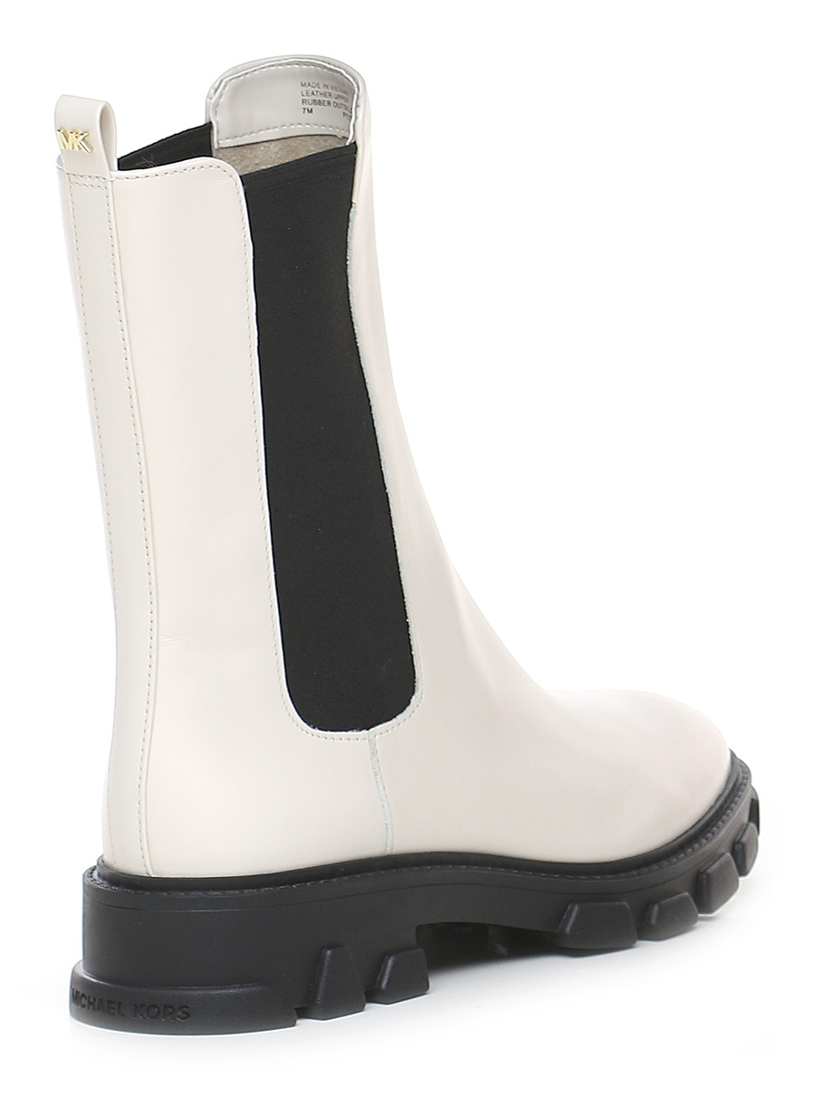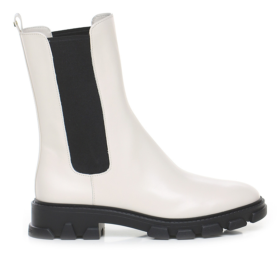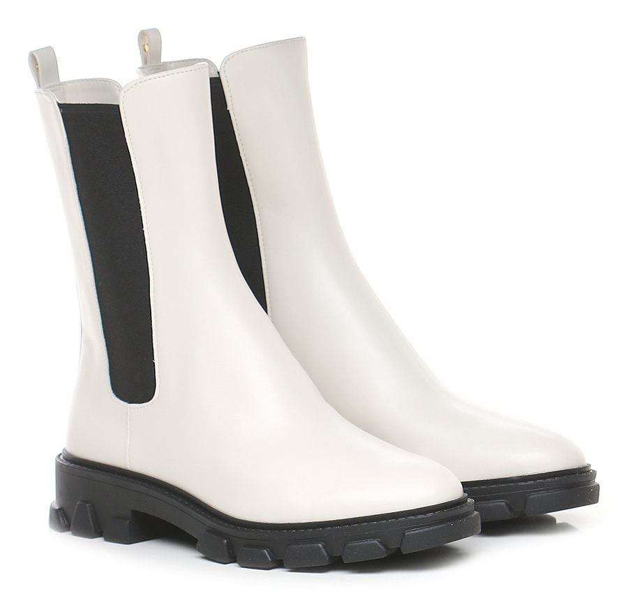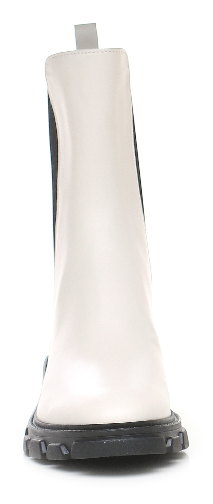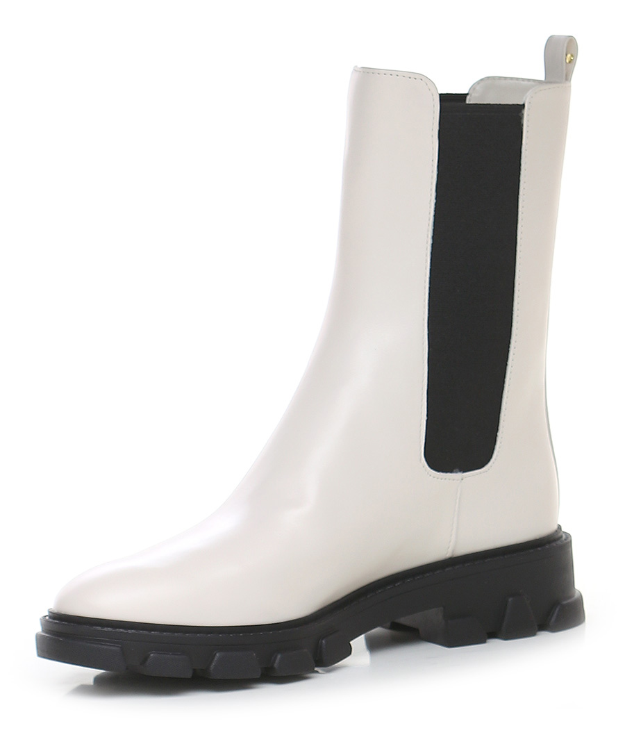 Leather ankle boot with chelsea-style side elasticated inserts. Rubber sole. 40mm heel height, 20mm platform with 20mm ledge.