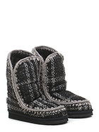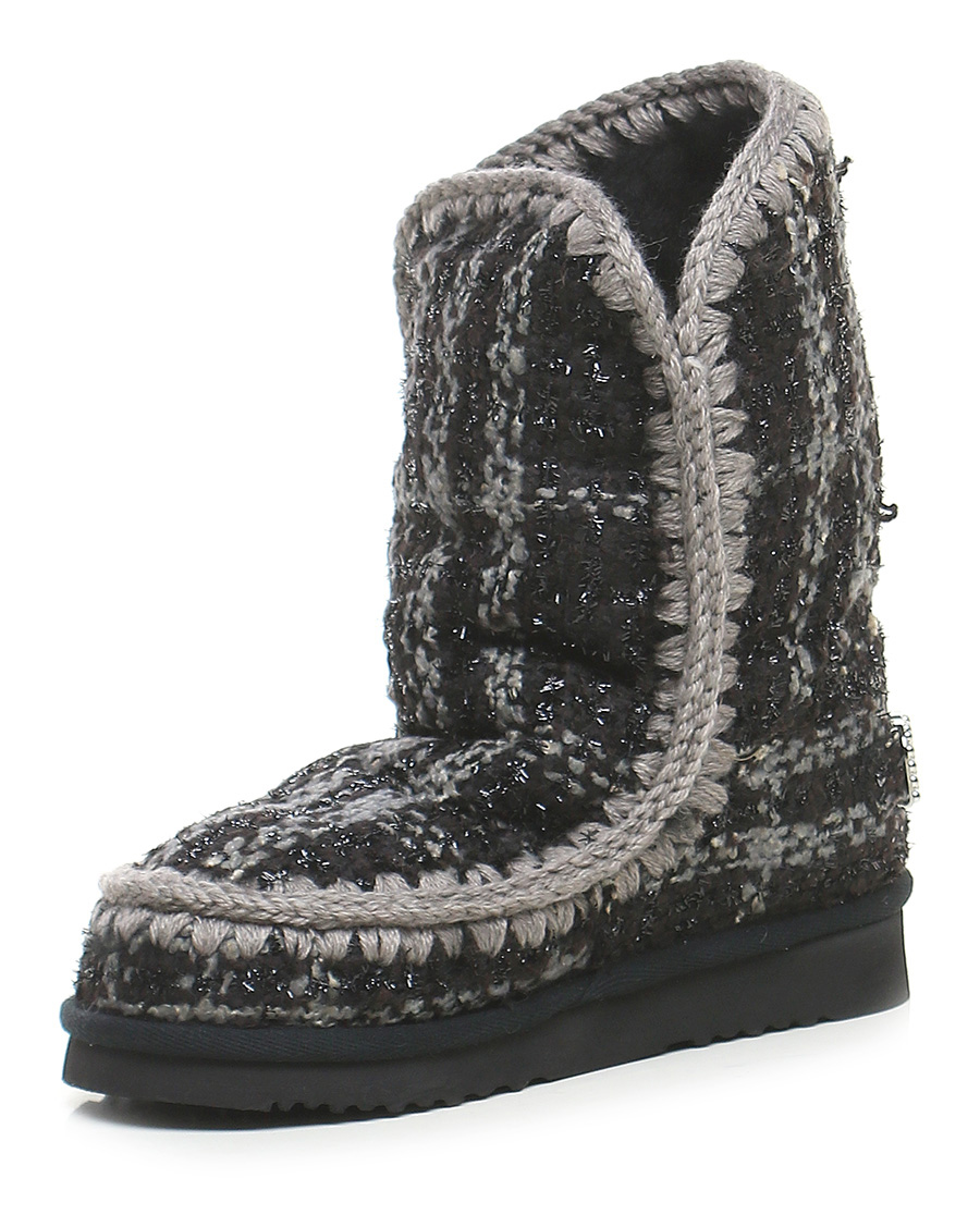 Ankle boot in wool and lurex fabric. Lined in sheepskin. Rubber sole: 30mm heel height, 20mm platform with 10mm ledge.