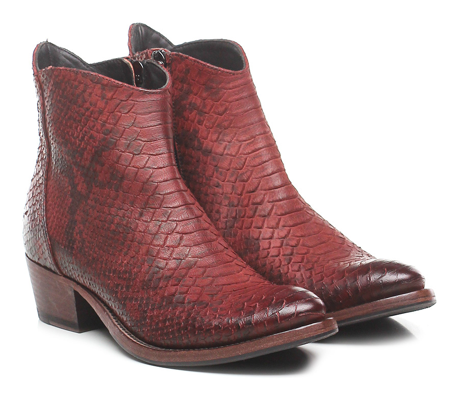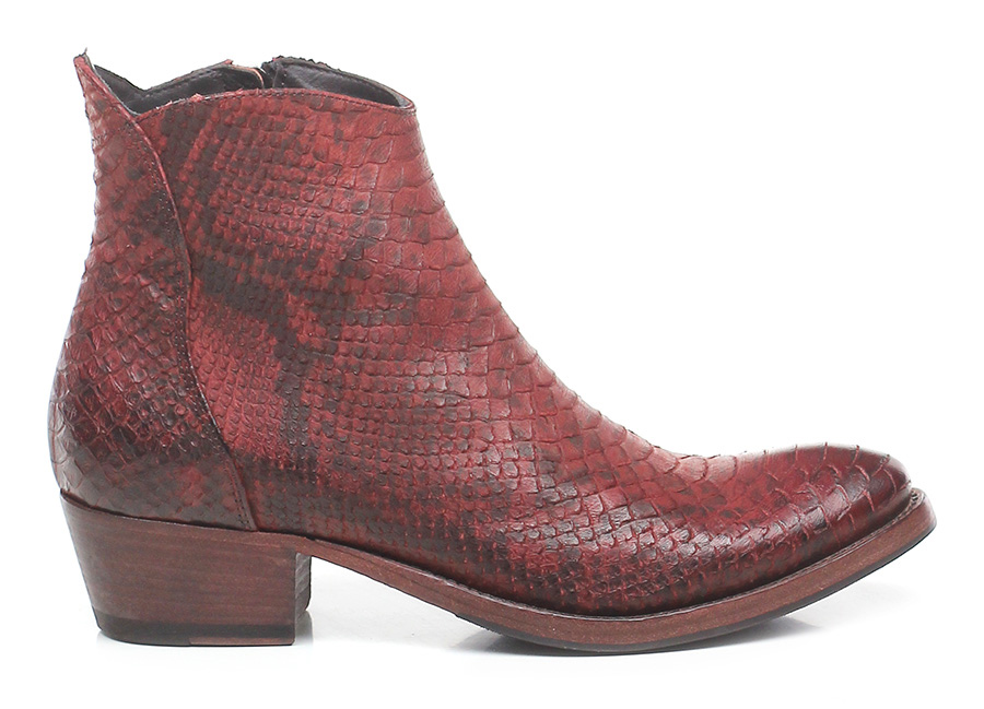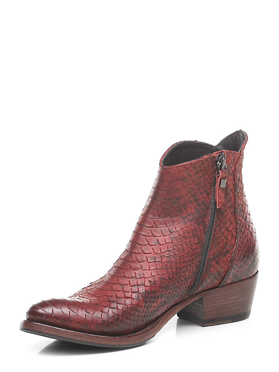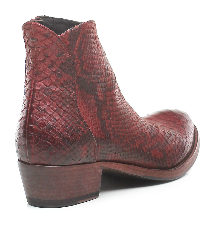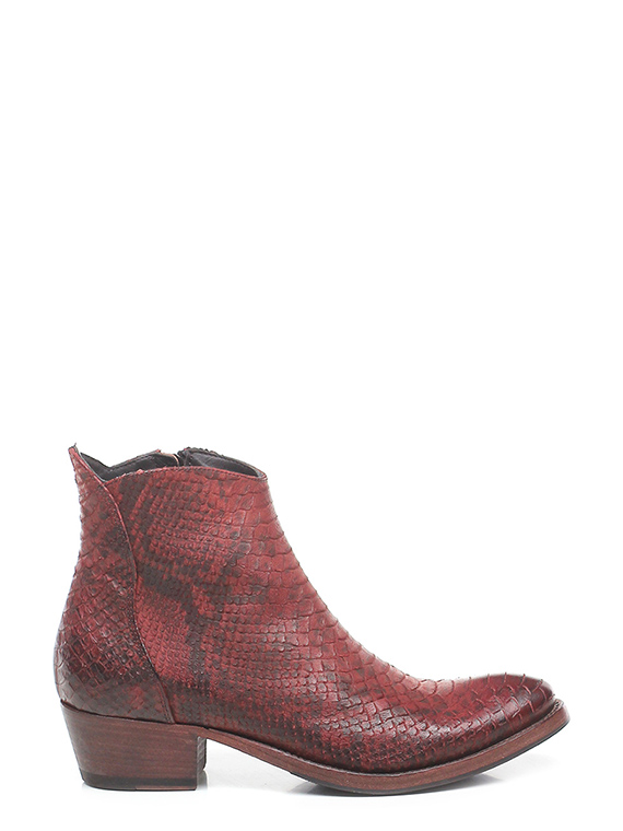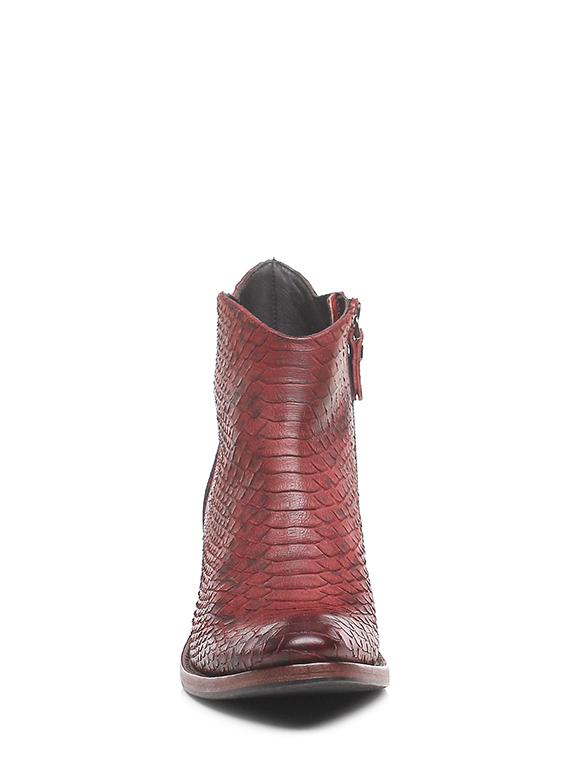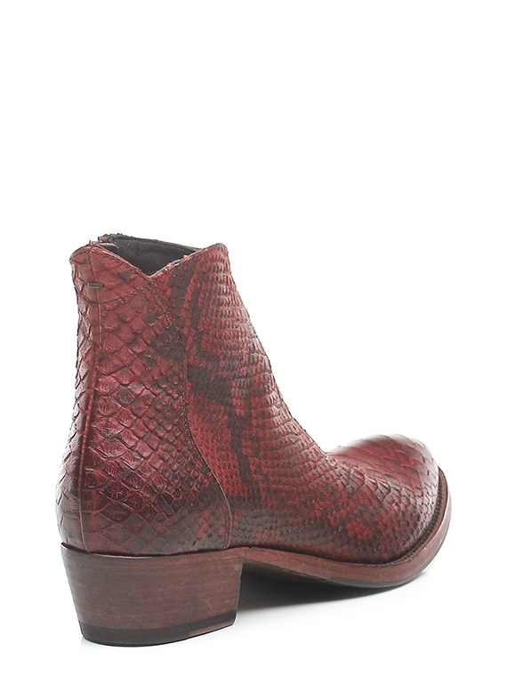 Python-effect print ankle boot with internal side zip, leather and rubber sole. 40 heel, 15 platform with 25 bar.