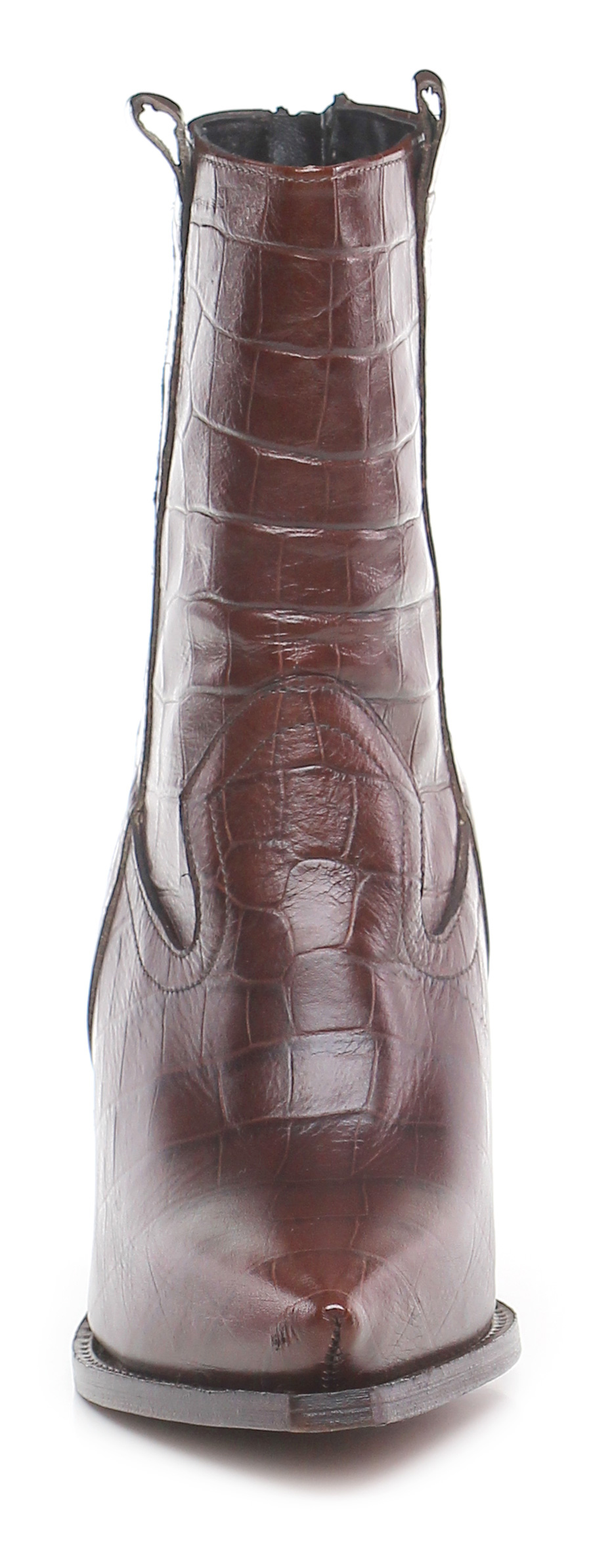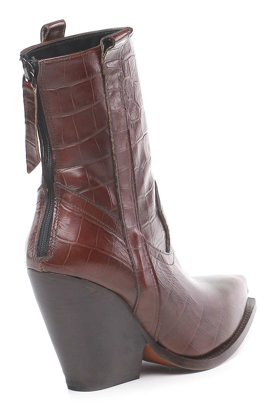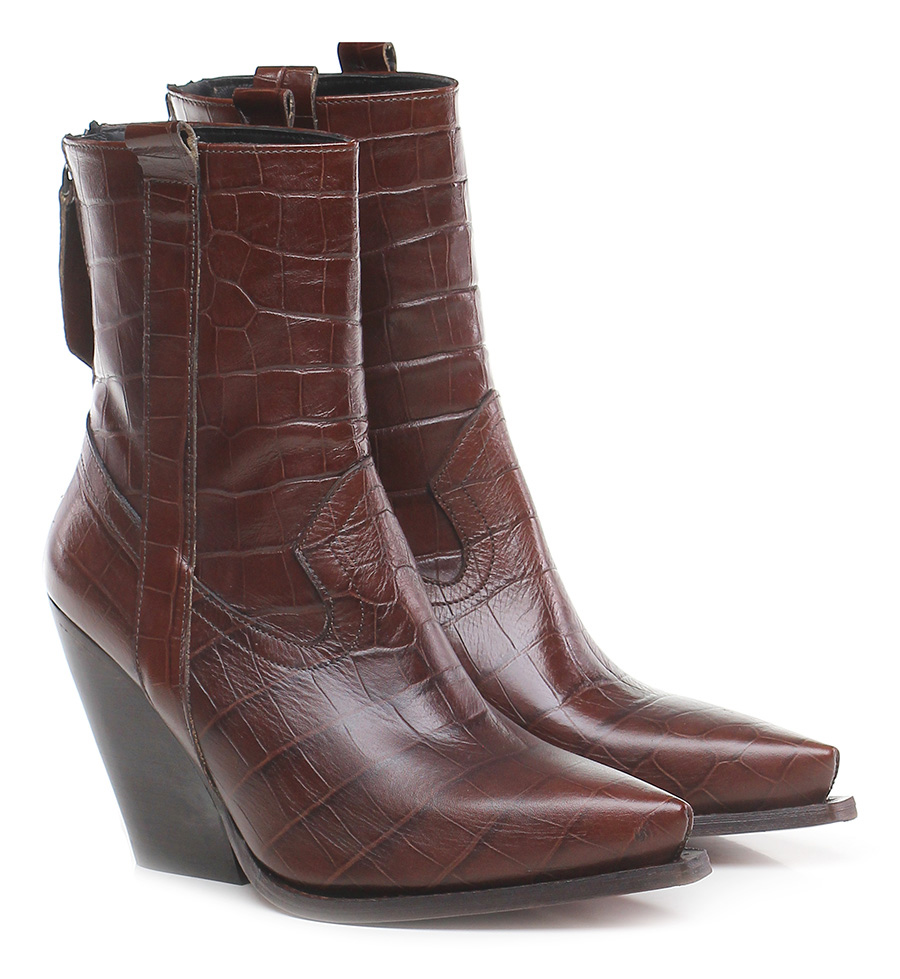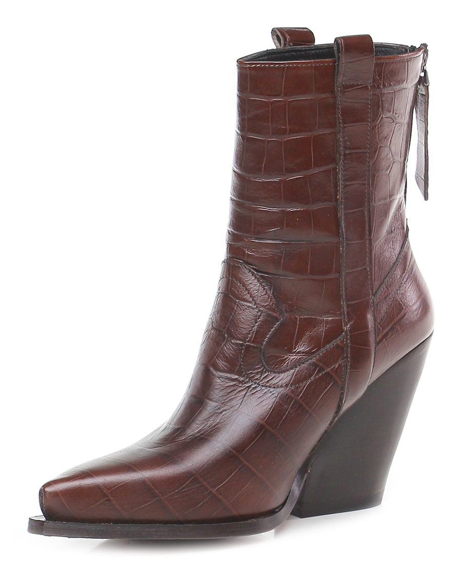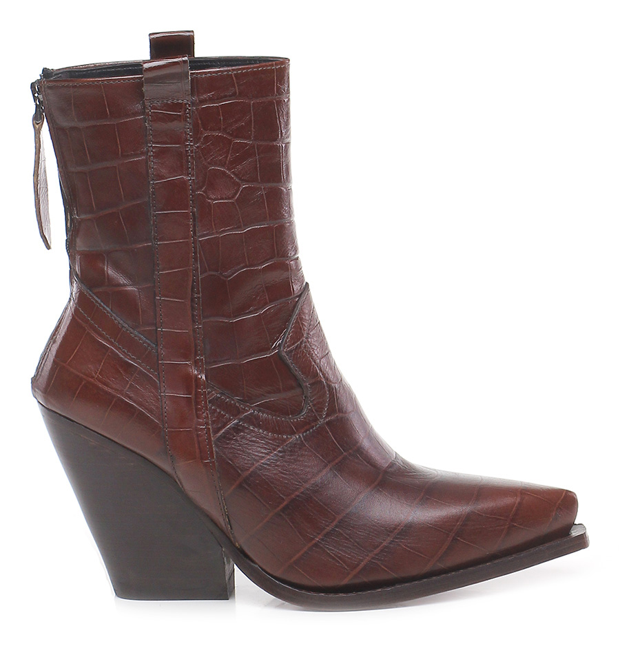 Ankle boot in crocodile print leather with zip on the back. Heel 100, platform 15 with ledge 85.
