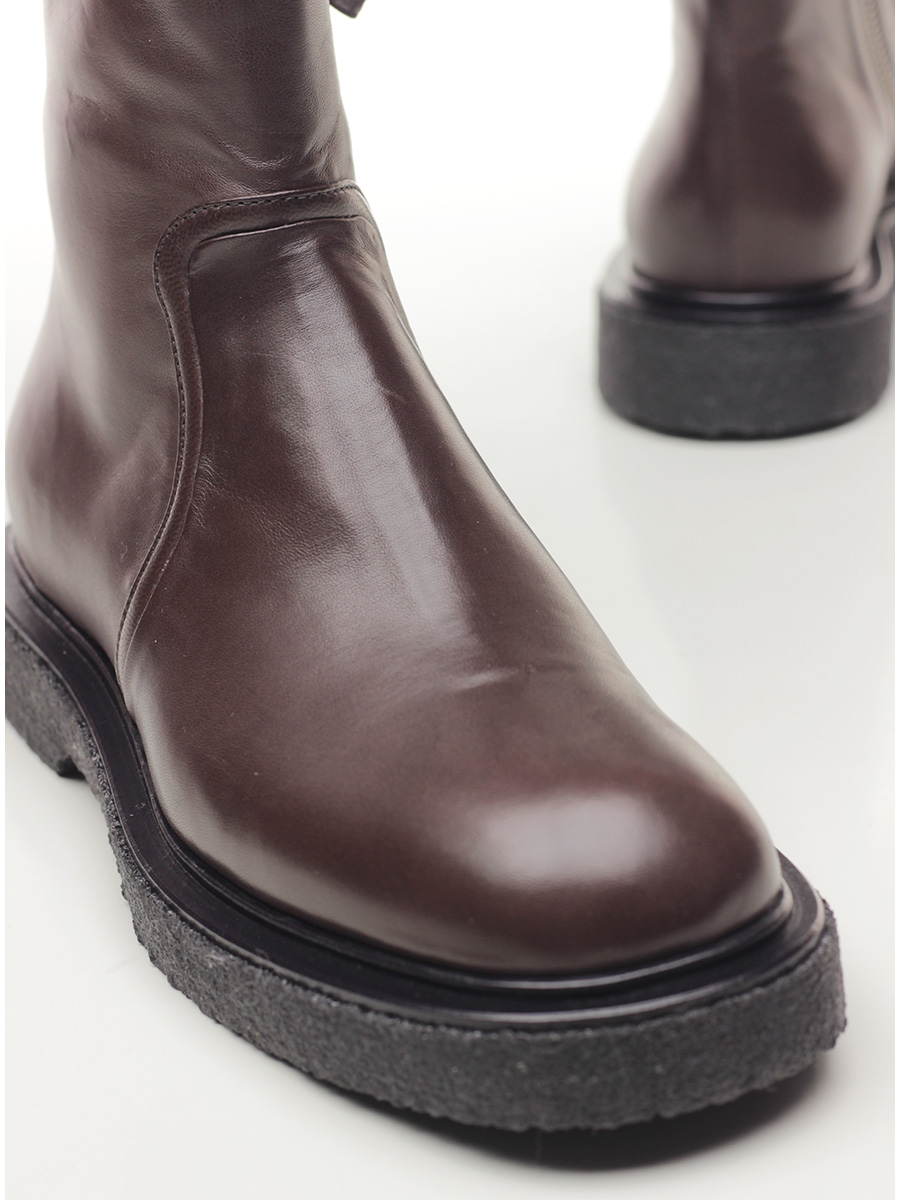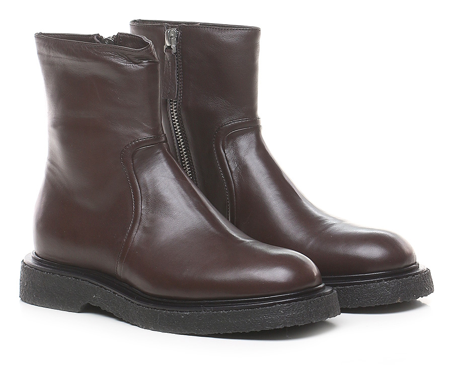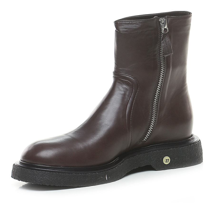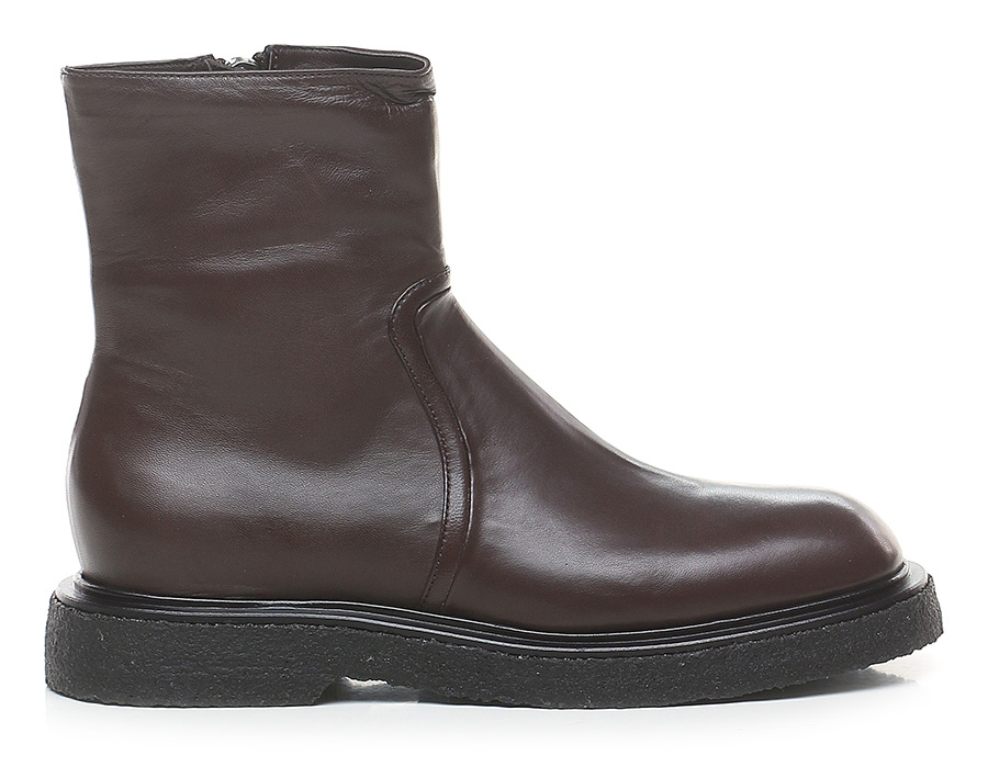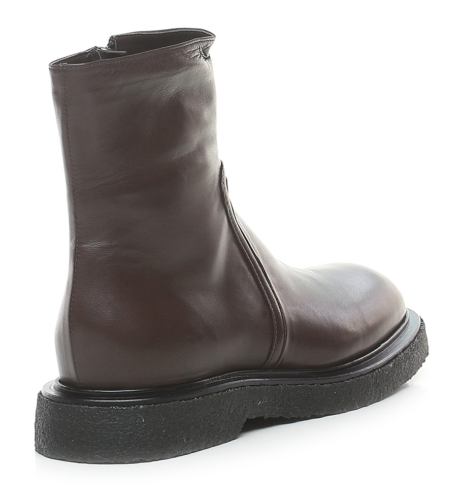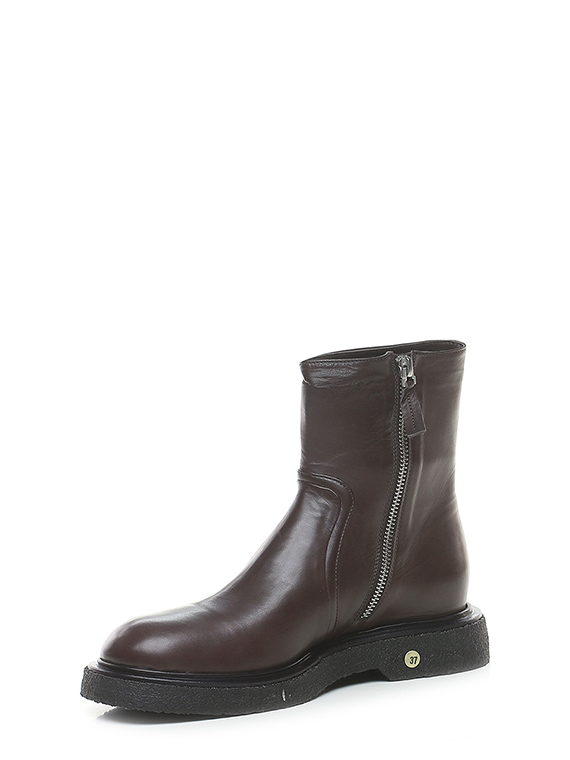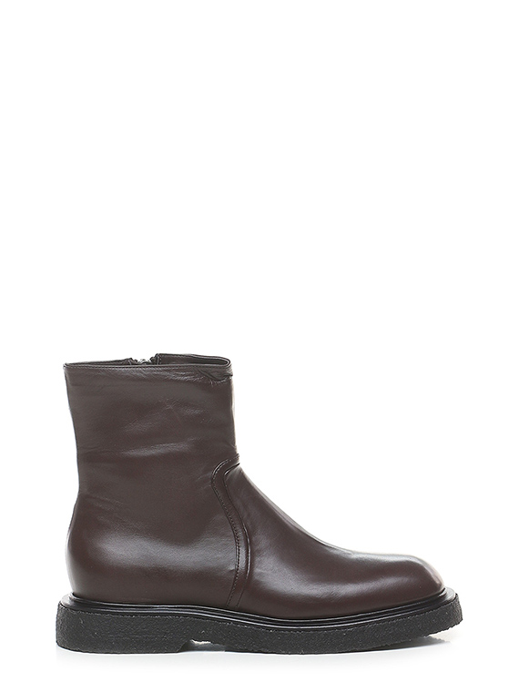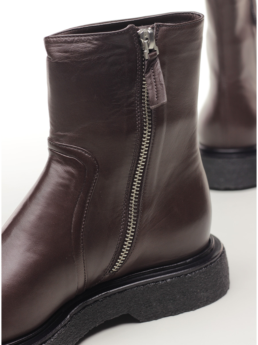 Leather ankle boot with side zip and crepe sole. Heel height 30mm, platform 20mm with 10mm ledge.