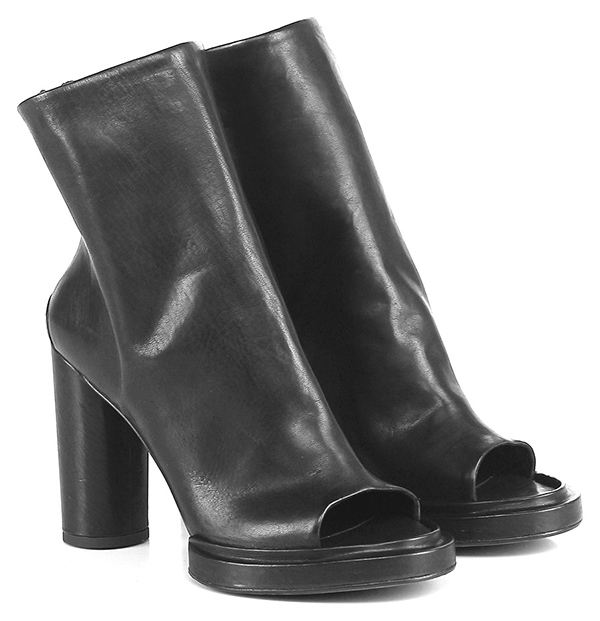 Tronchetto open toe in pelle con zip su retro e suola in cuoio. Tacco 100, platform 15 con battuta 85.