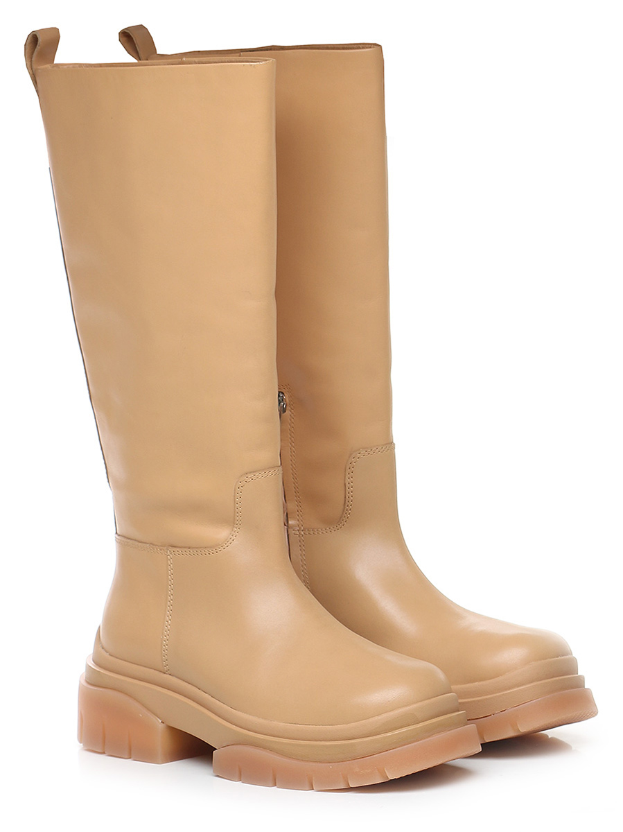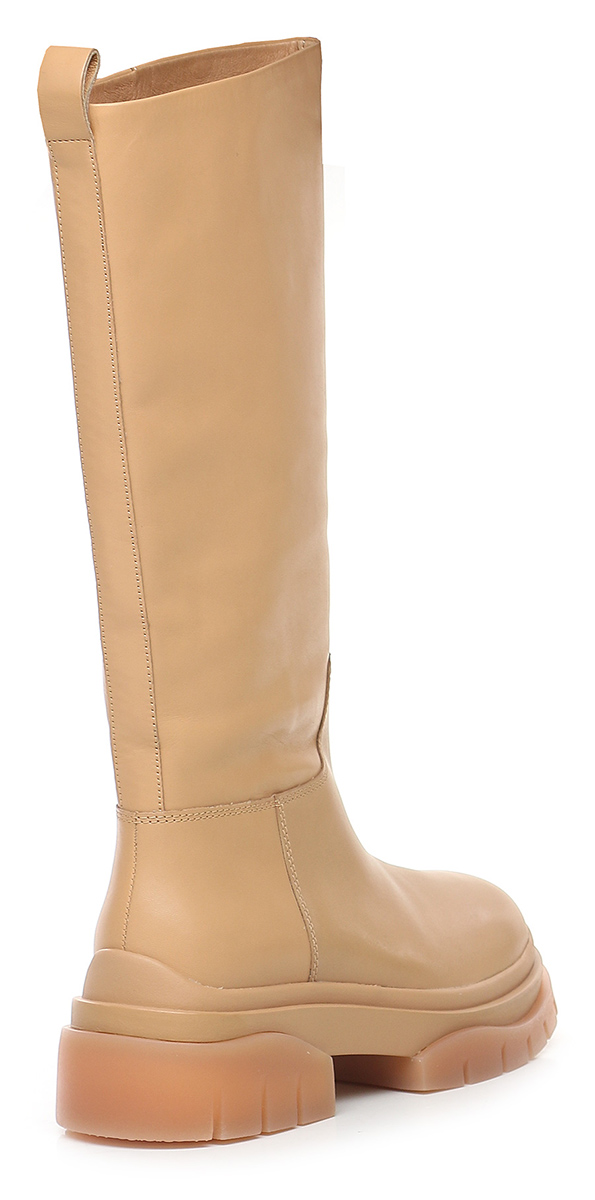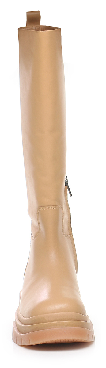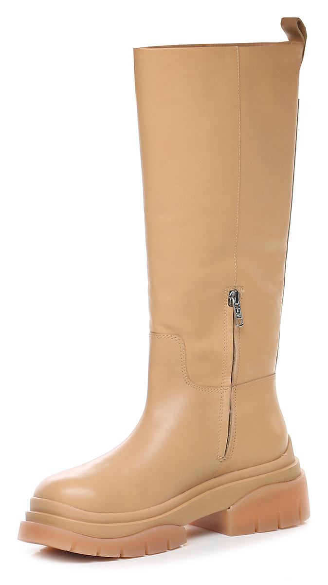 Leather boot with side zip. Rubber sole. 55mm heel height, 35mm platform with 20mm ledge. Leg height 35cm.