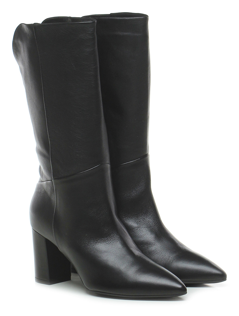 Leather boot with internal side zip, rubber sole. 75 heel lined in leather.