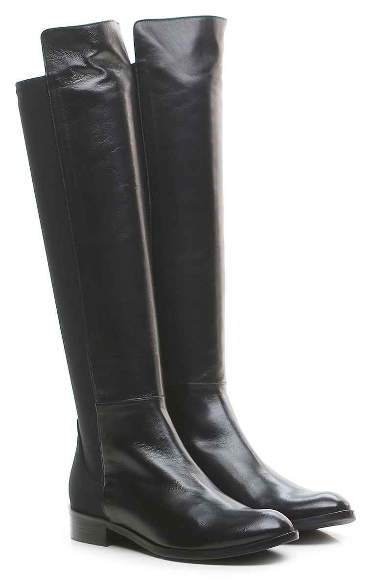 Boot in leather and stretch fabric with rubber sole. Heel height 30mm. Leg height 40mm.
