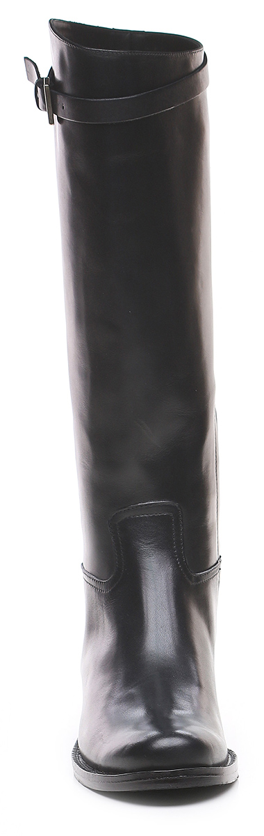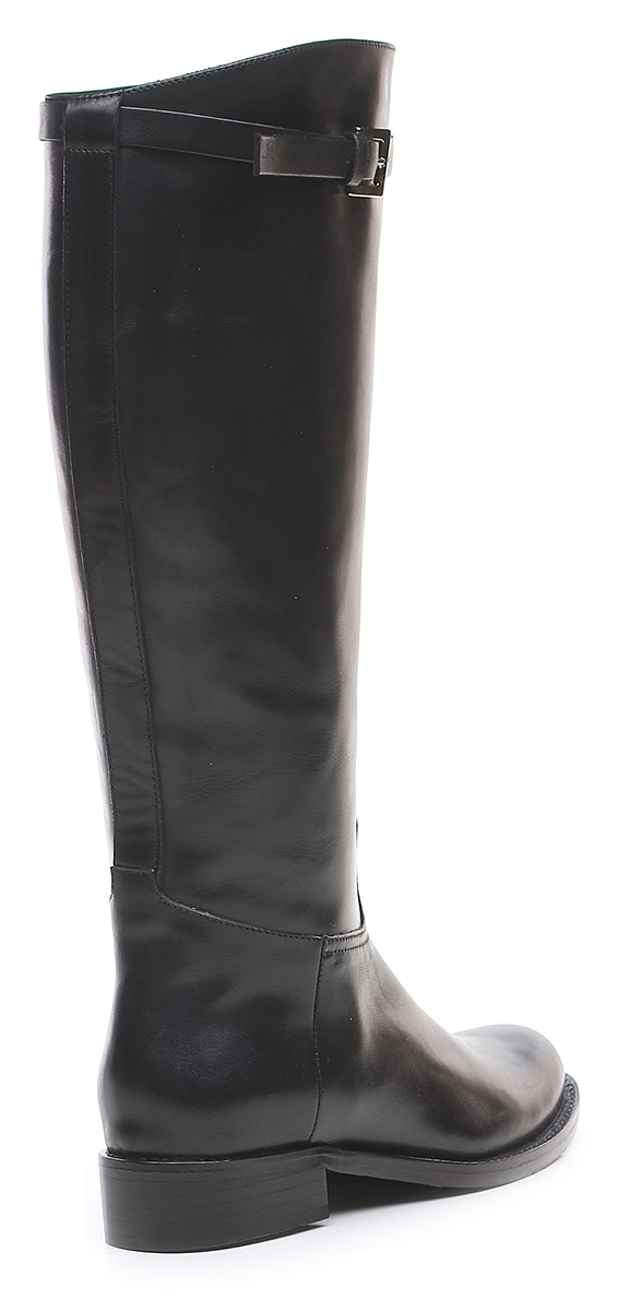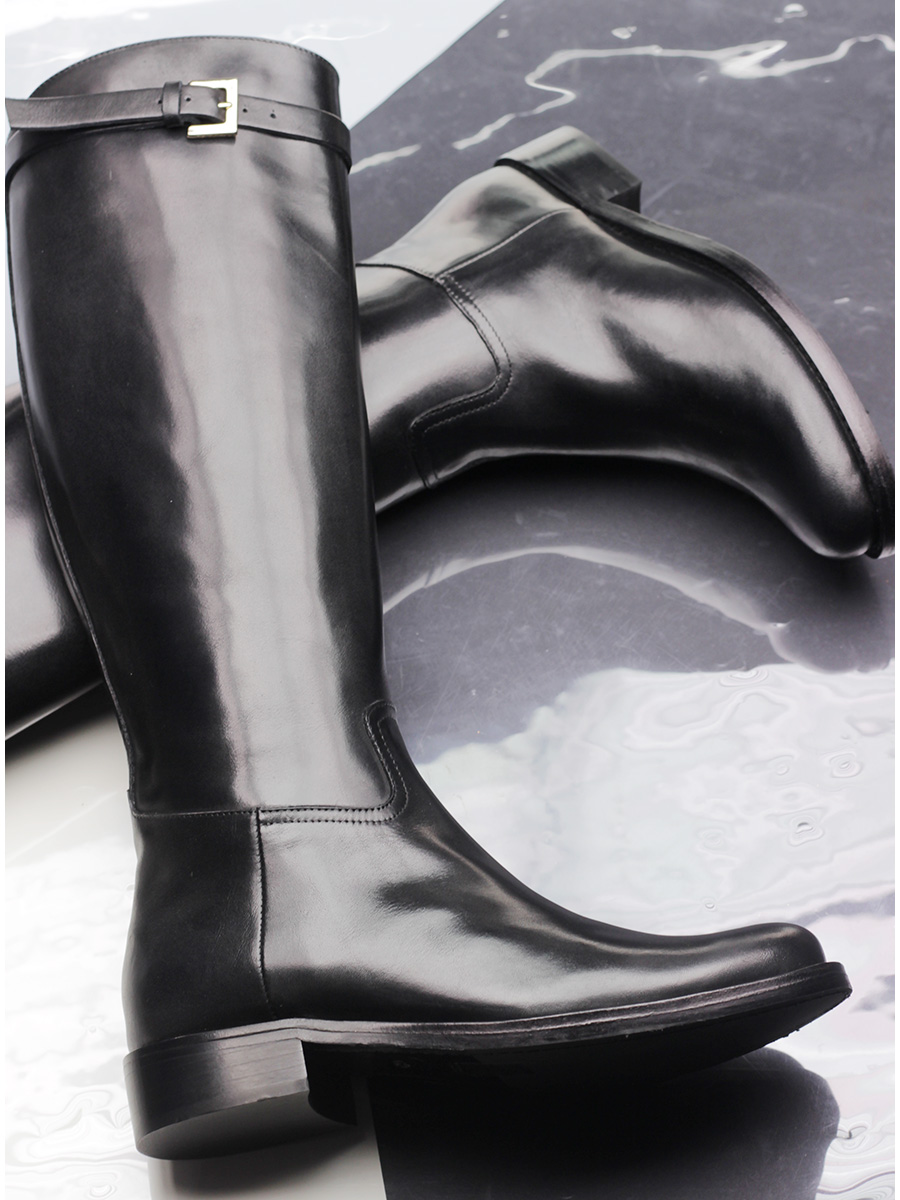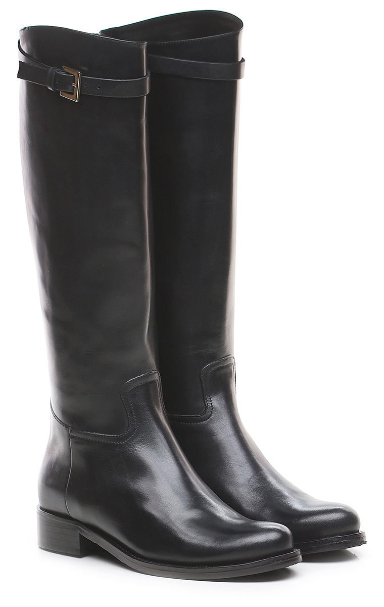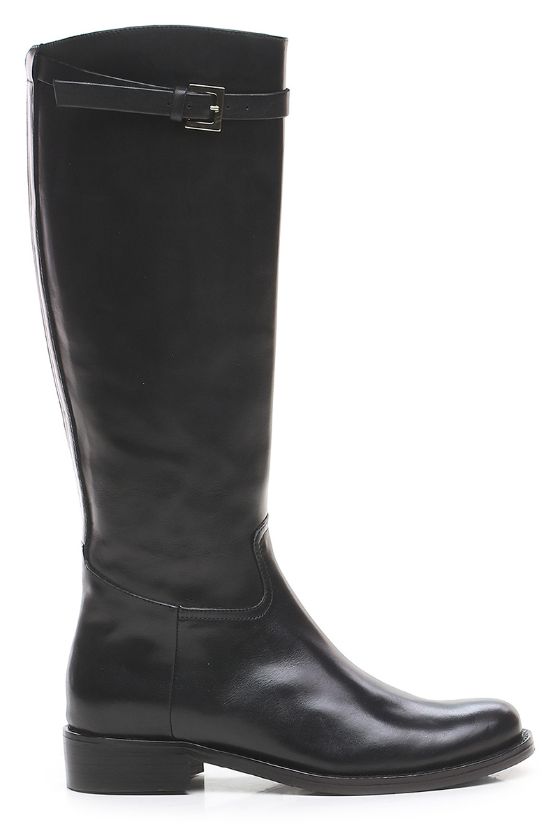 Leather boot with strap on the leg and lateral elasticated insert. Leather and rubber sole. Heel height 30mm.