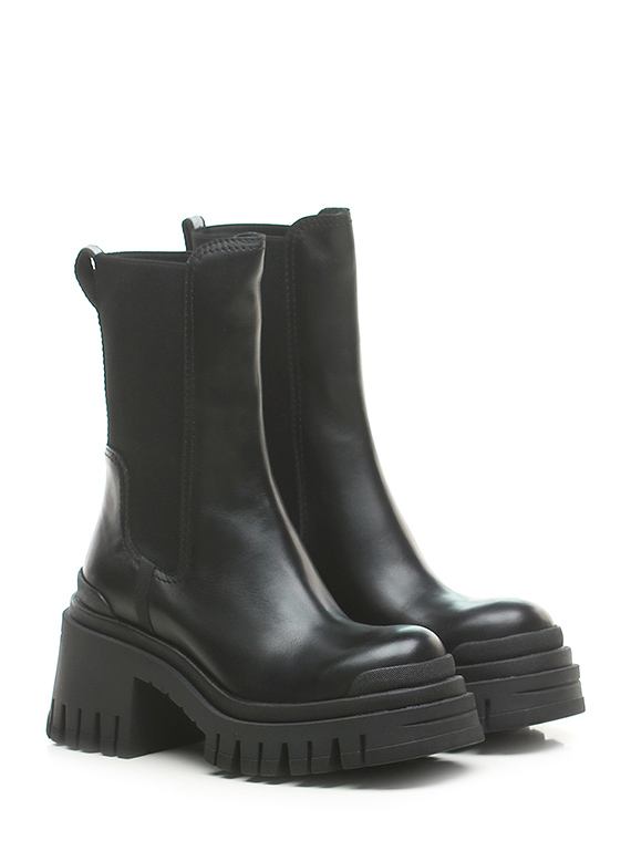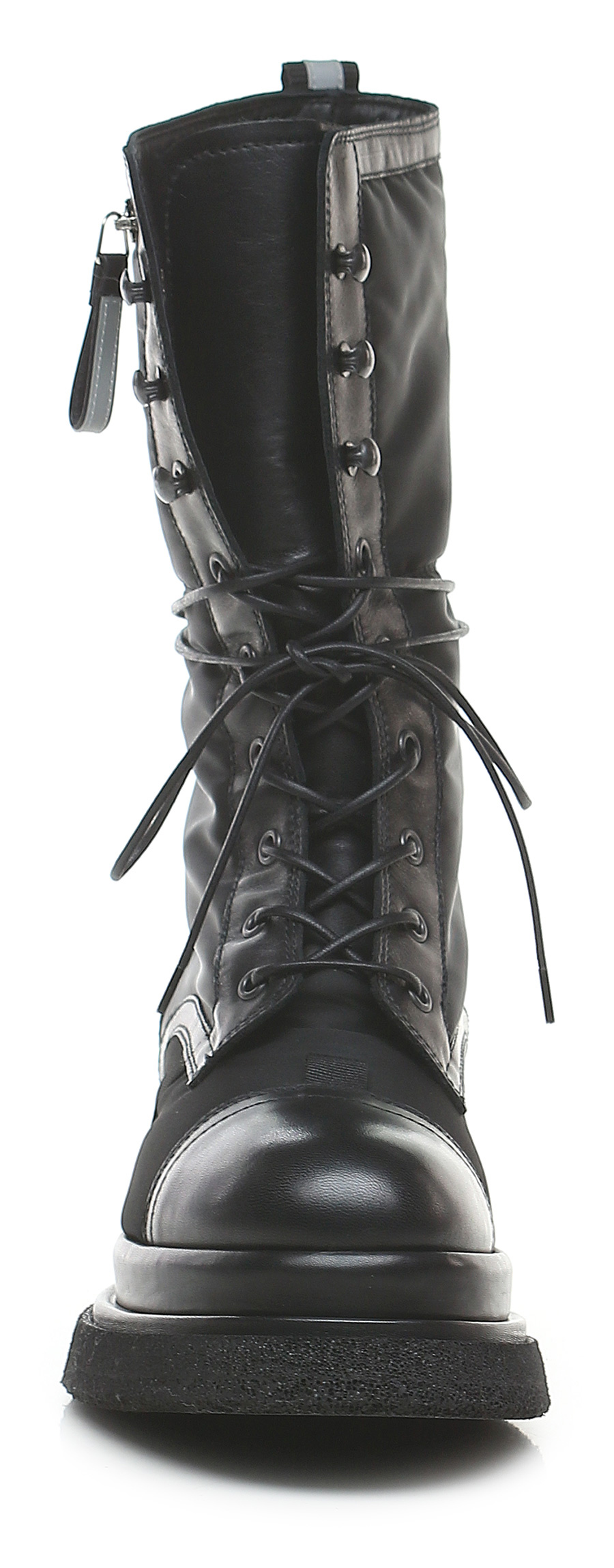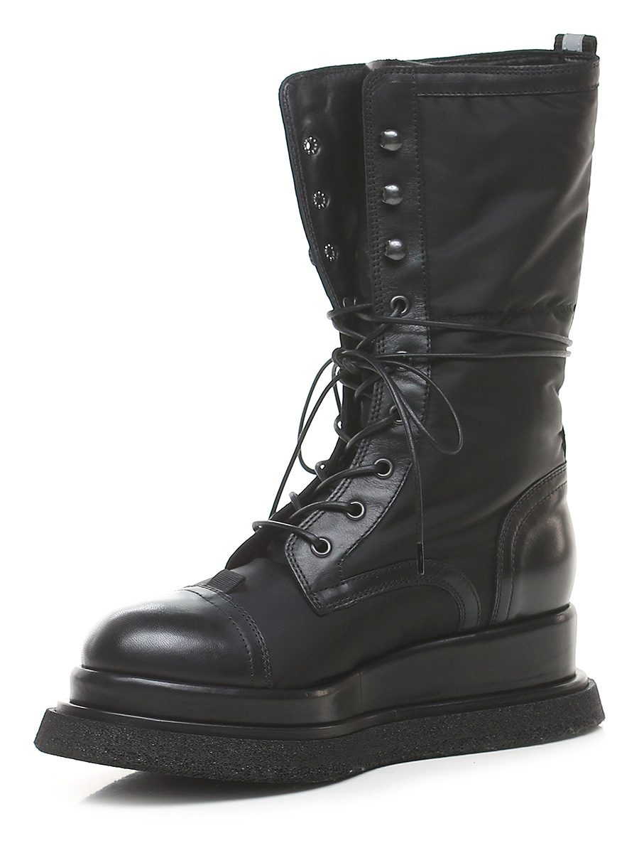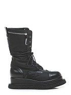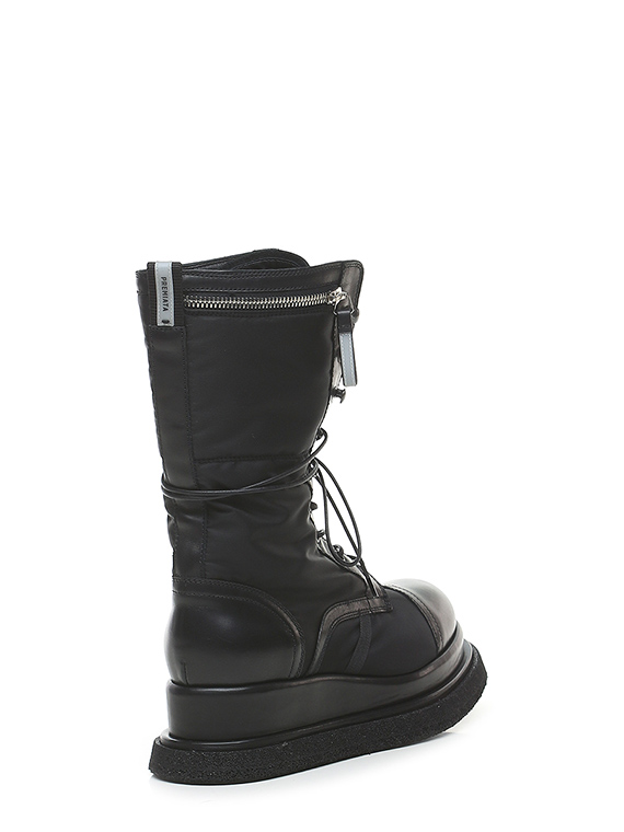 Boot in technical fabric and leather with side pocket with zip closure. Rubber sole. 55mm heel height, 40mm platform with 15mm ledge. Leg height 24.5cm. Part of the sole lined in leather.
