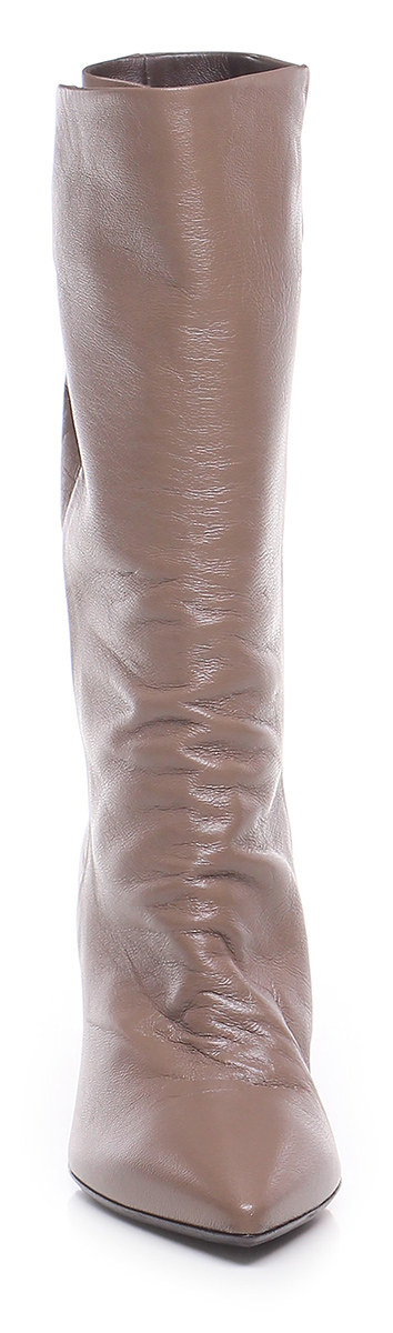 Vintage effect leather boot with elasticated inserts on the back of the leg, leather and rubber sole. Heel 80, covered in leather. Leg height 250.