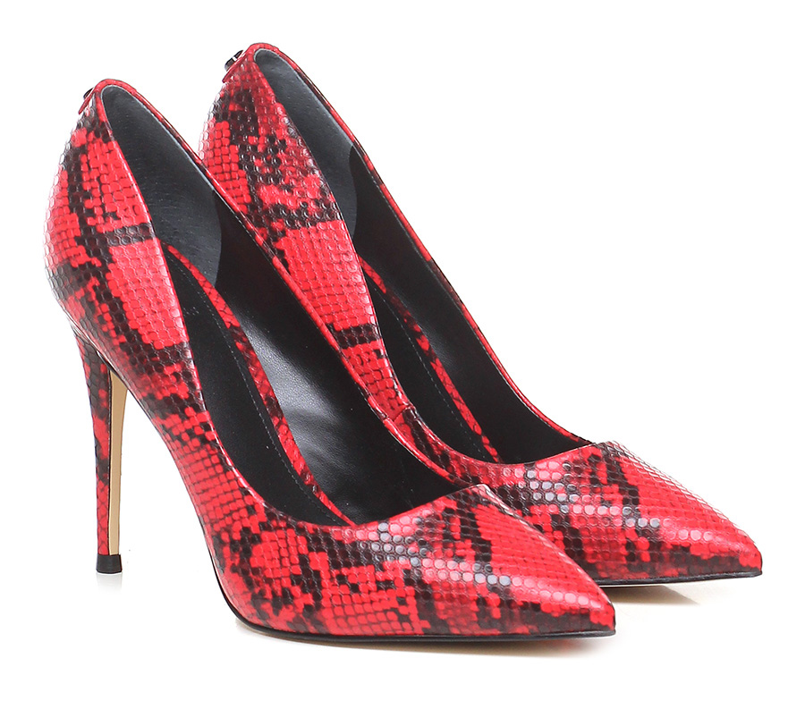 Decolletè in eco pelle stampa pitone, suola in gomma. Tacco 105, platform interno 10 con battuta 95.