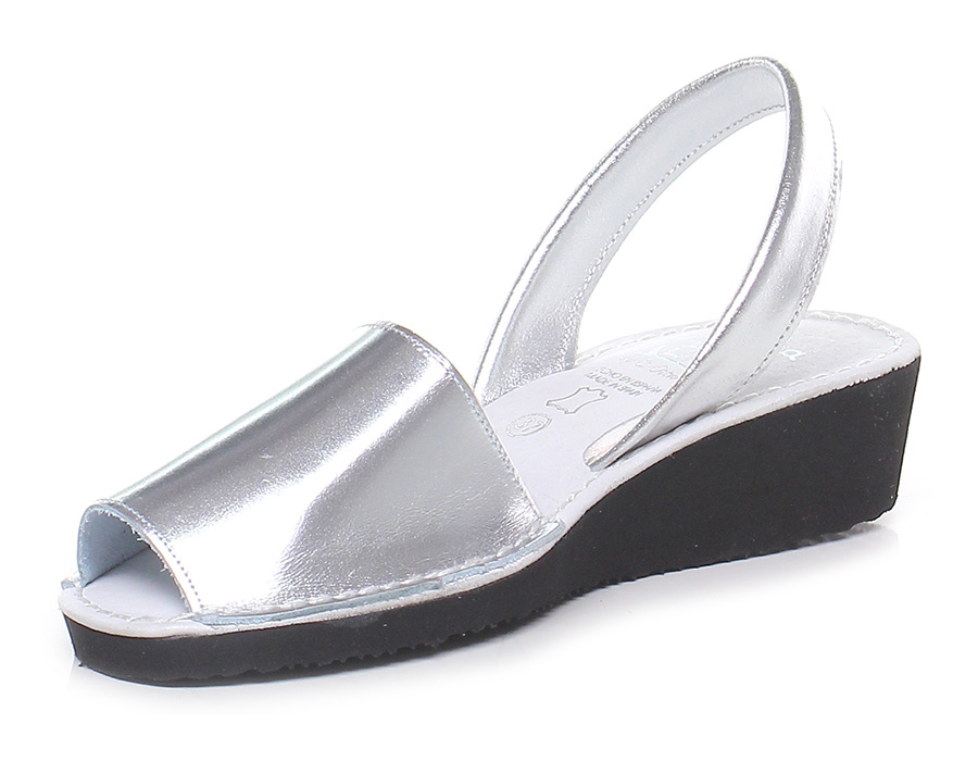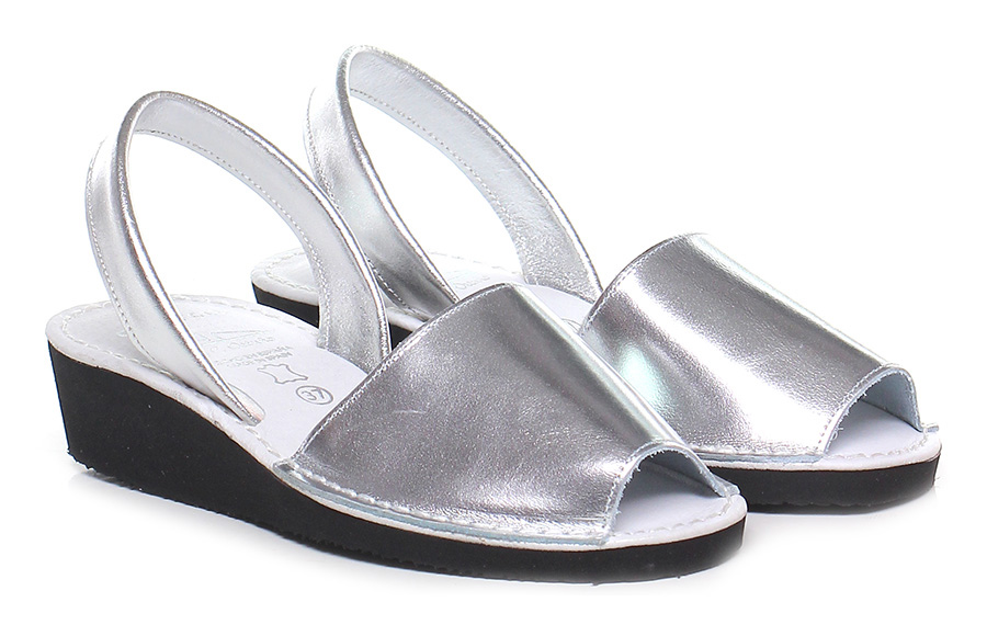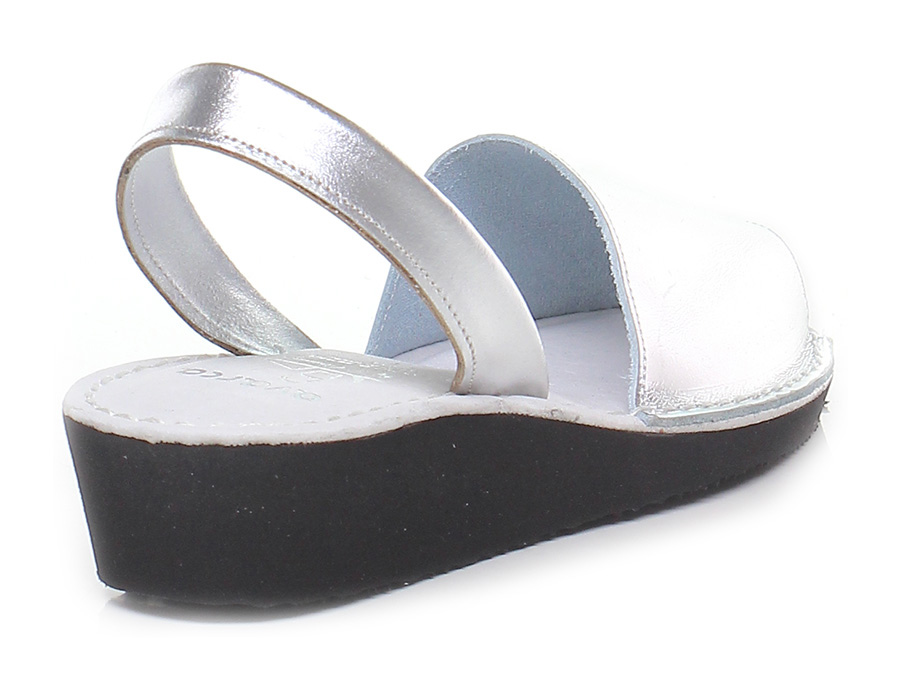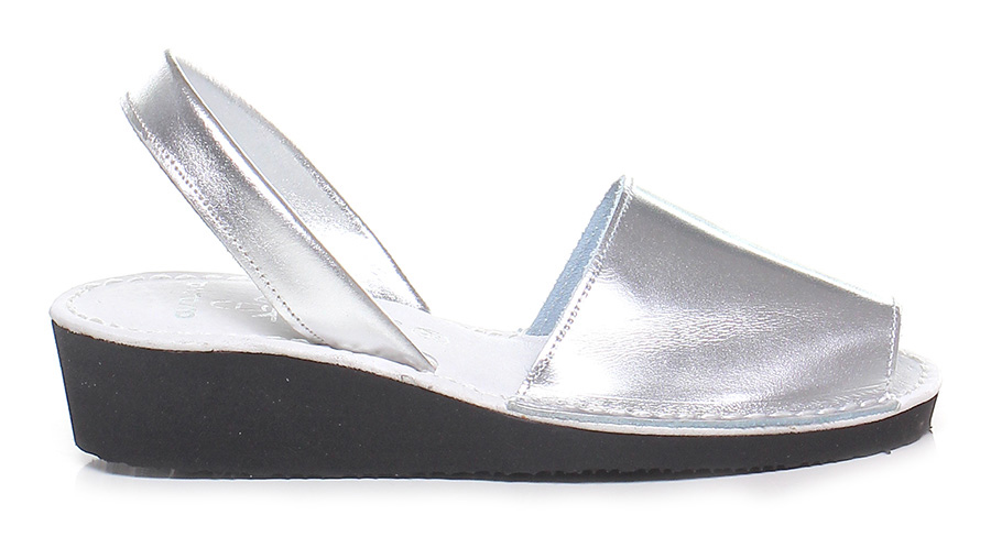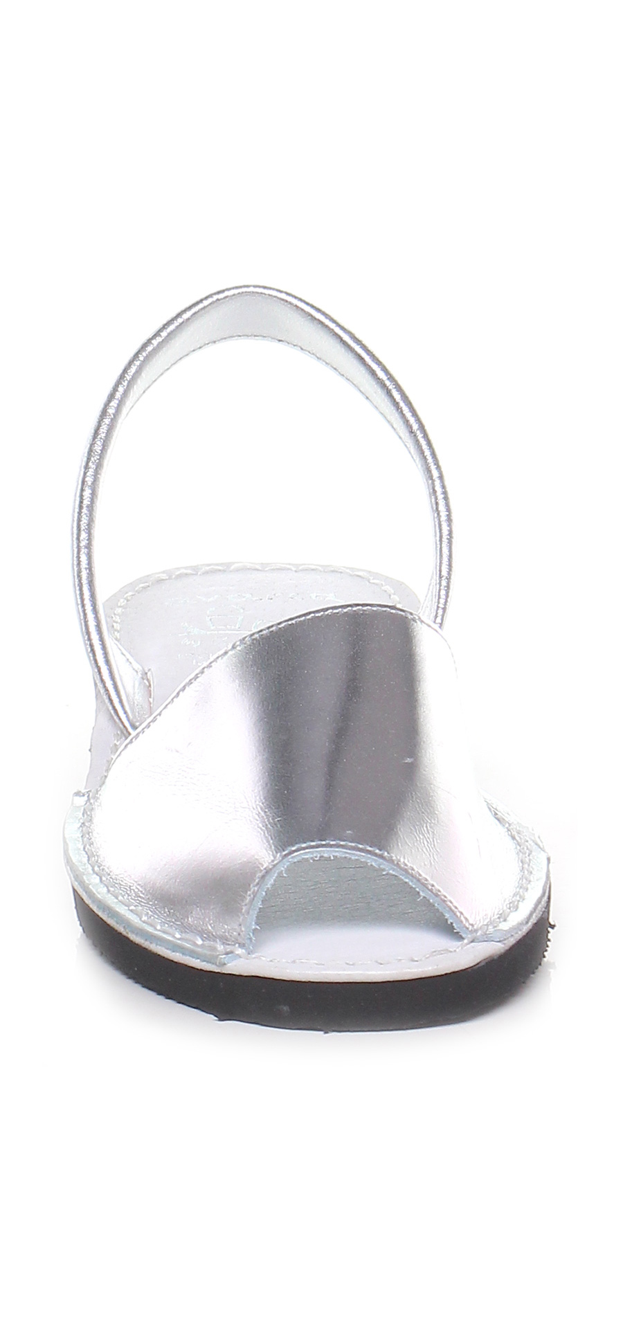 Flat sandal in laminated leather with rubber sole. 45 heel.