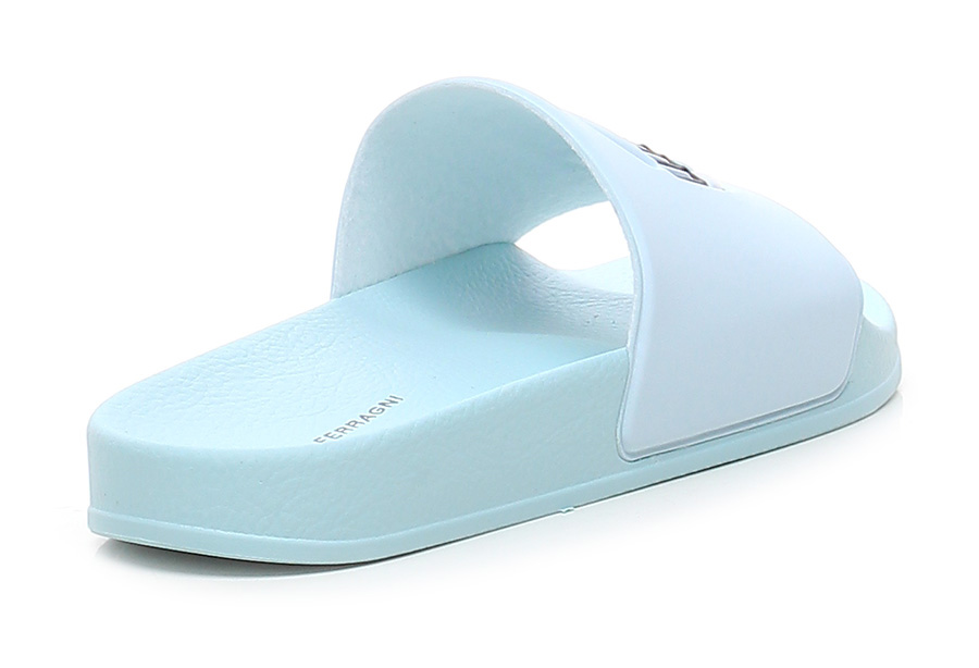 Low rubber sandal with band, rubber sole. Heel 20, platform 15 with ledge 5. Shaped insole, Chiara ferrragni logo, on the upper.