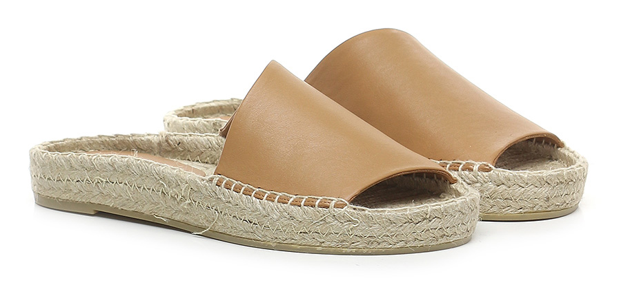 Leather sandal with rubber sole. 25mm heel height, 20mm platform with 5mm ledge. Rope sole profile and insole.