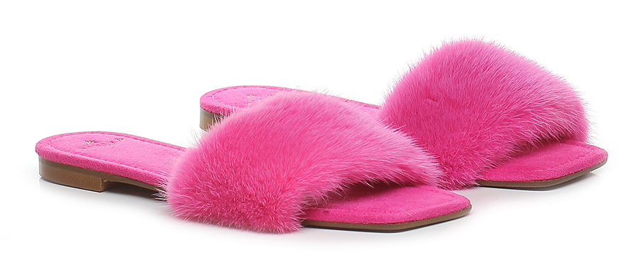 Flat sandal in 100% sustainable mink, rubber sole. 10mm heel.