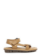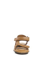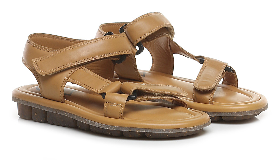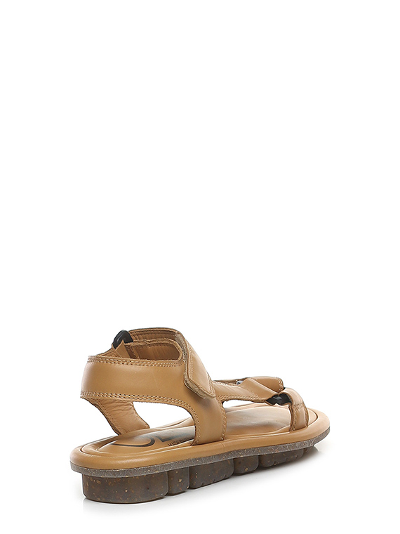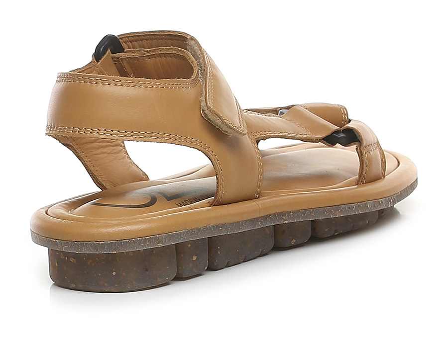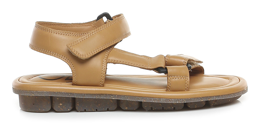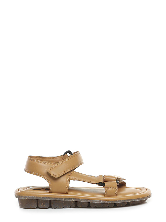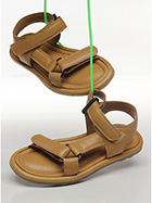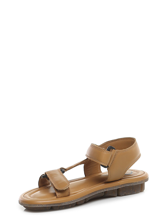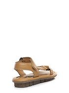 Leather sandal with ankle and front strap. Rubber sole. Heel height 30mm, platform 20mm with 10mm ledge.