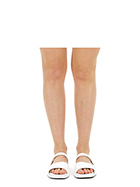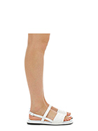 Low band sandal in woven leather with strap on the back, leather and rubber sole. Heel 25, platform 15 with ledge 10. Soft padded insole.