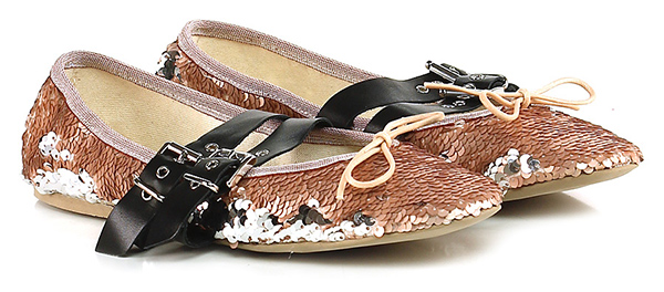 Low shoe in sequins with double strap and rubber sole.