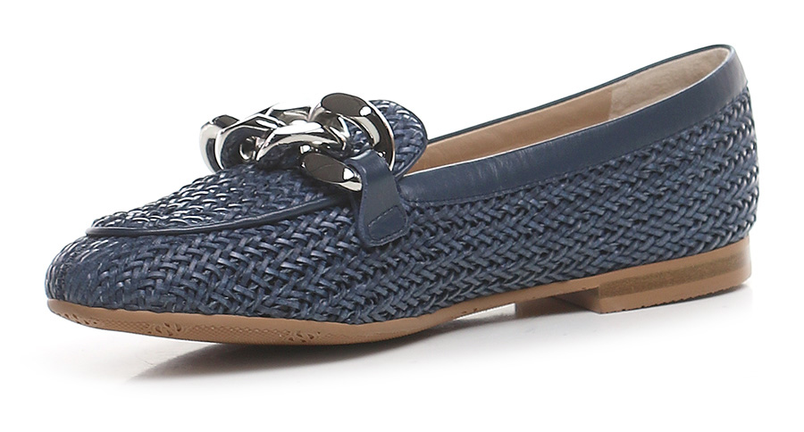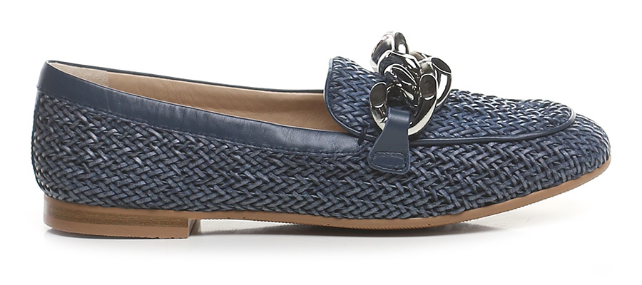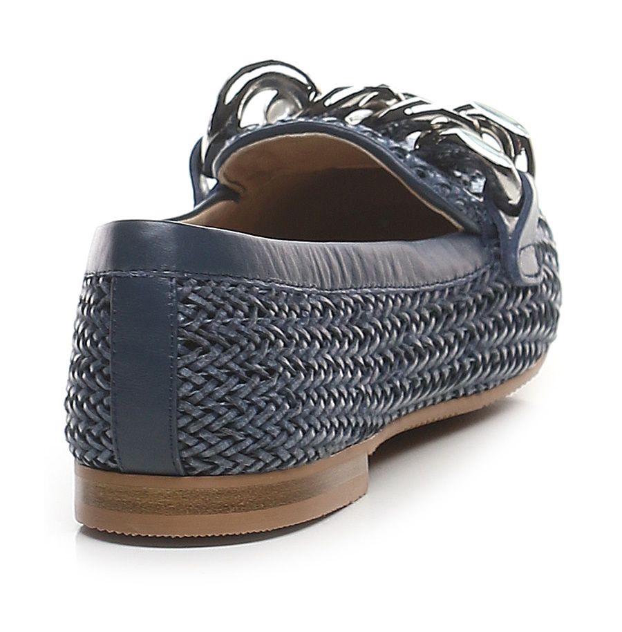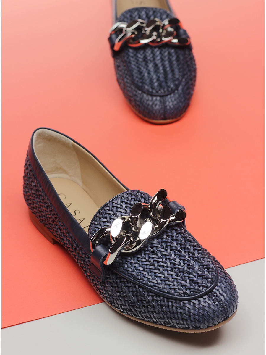 Vegan leather shoe with front chain accessory. Rubber sole. Heel height 15mm.