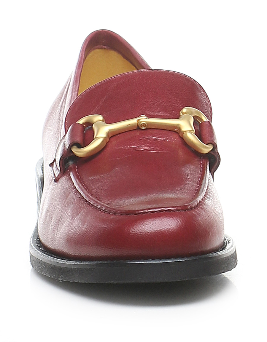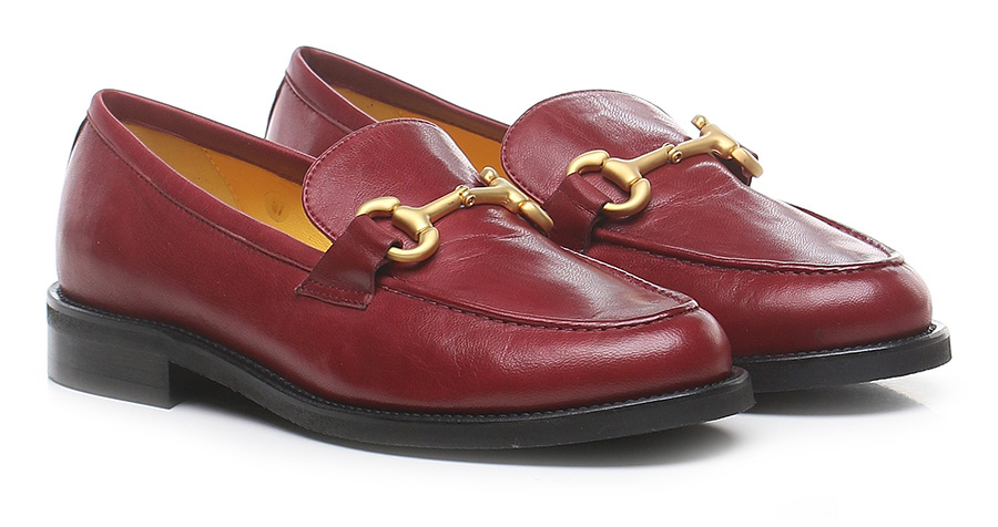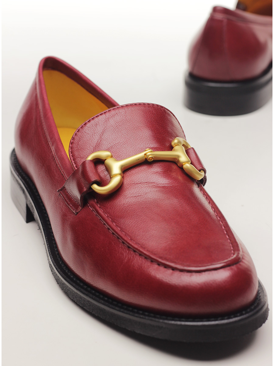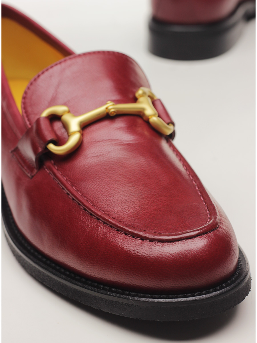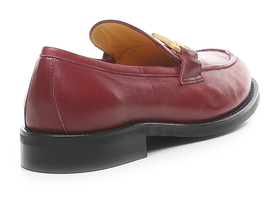 Leather shoe with front clamp. Vibram rubber sole: heel height 25mm.