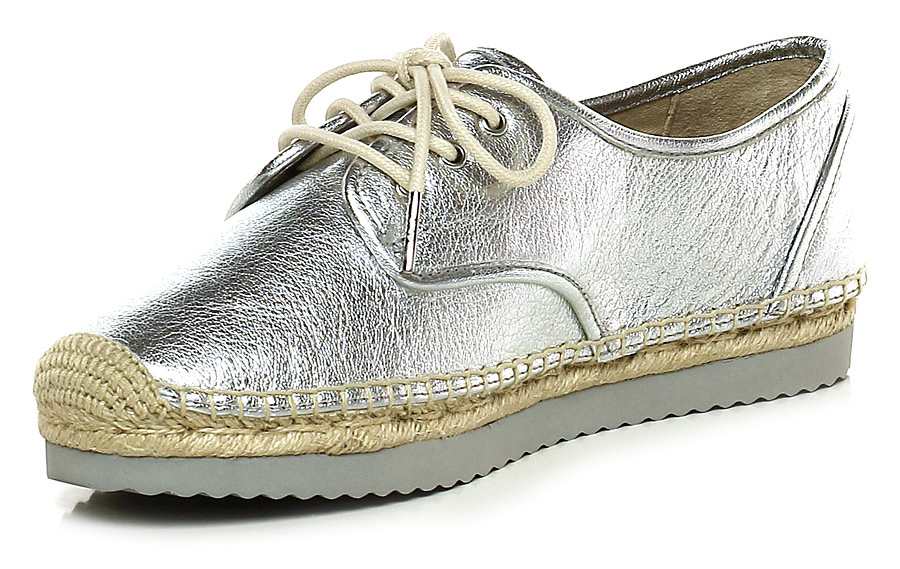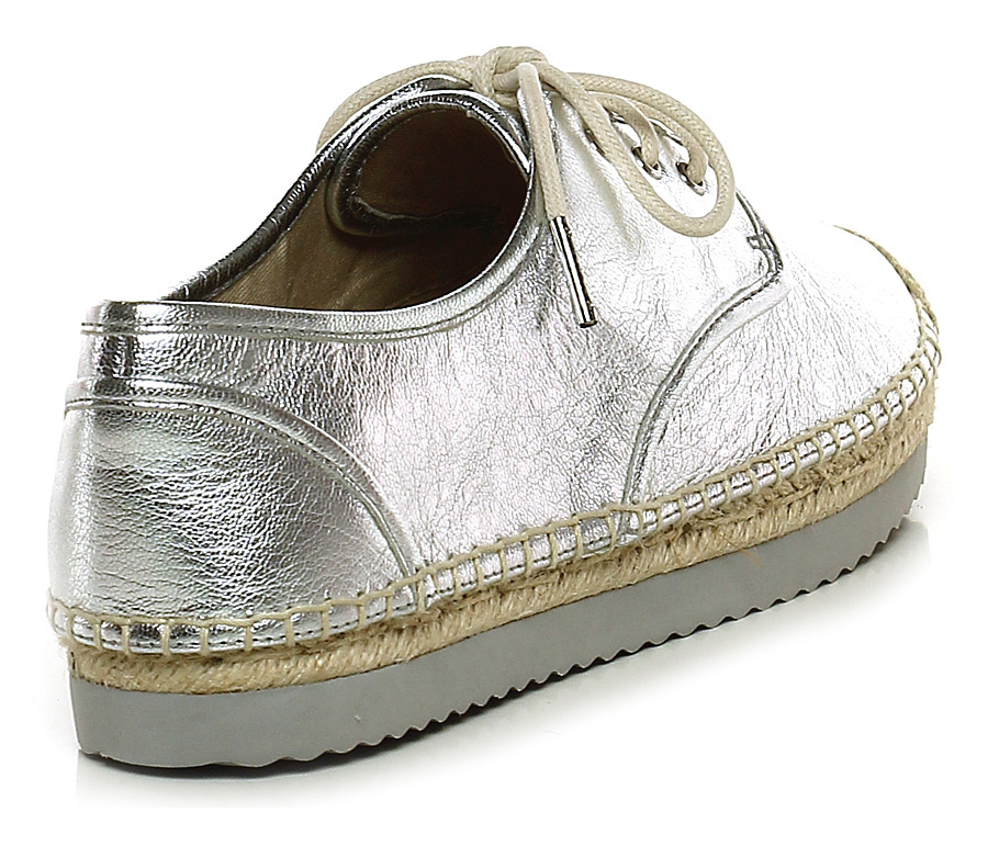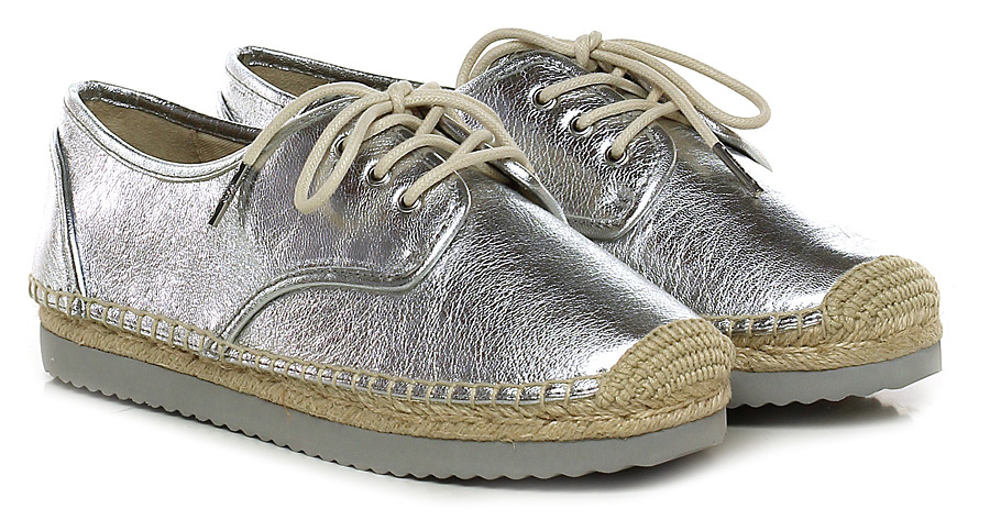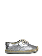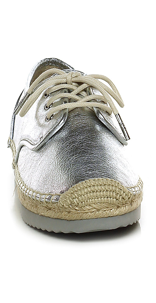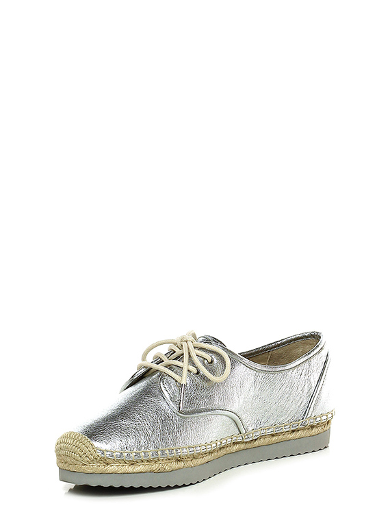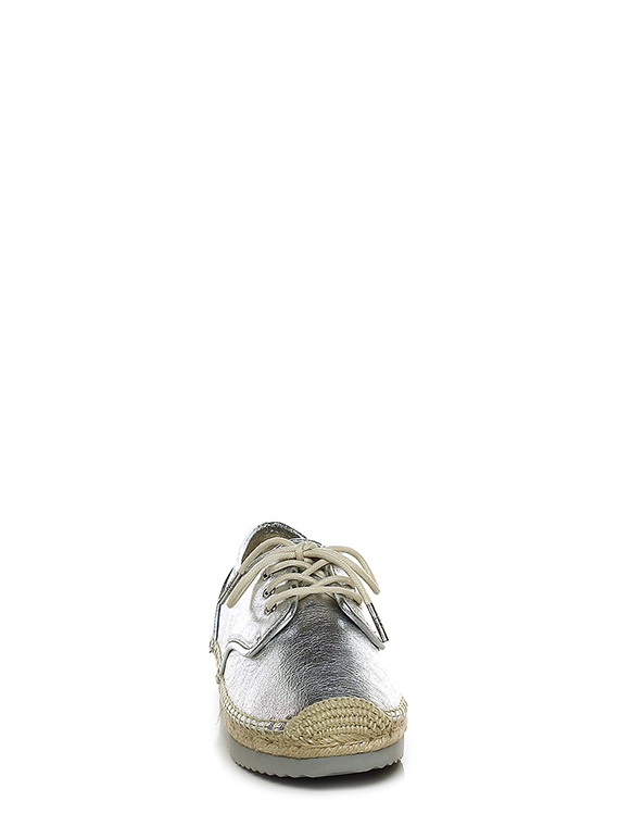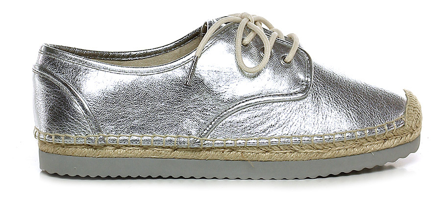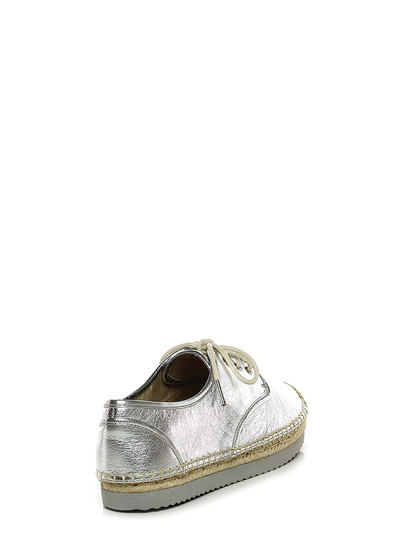 Low shoe in vintage laminated leather with rubber sole. Heel 30, rope platform.