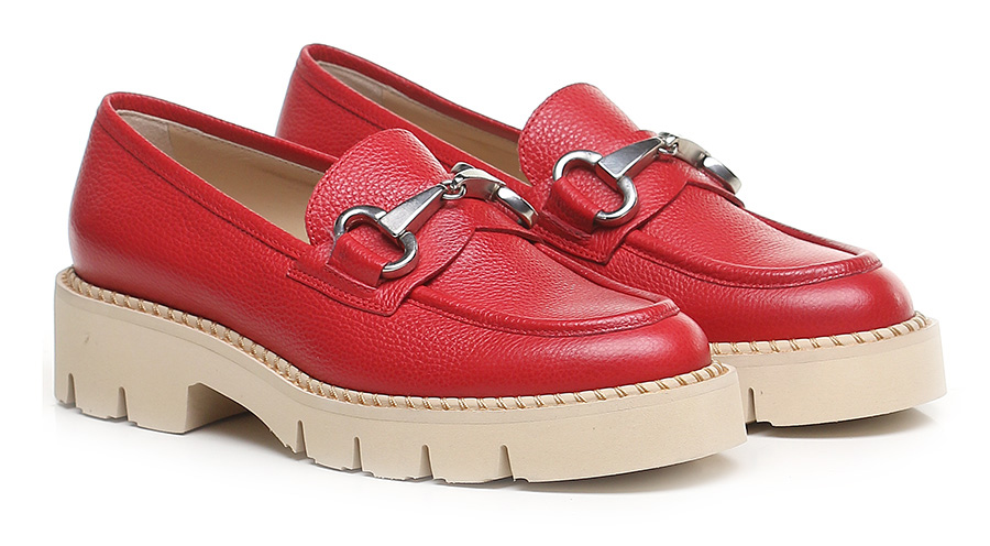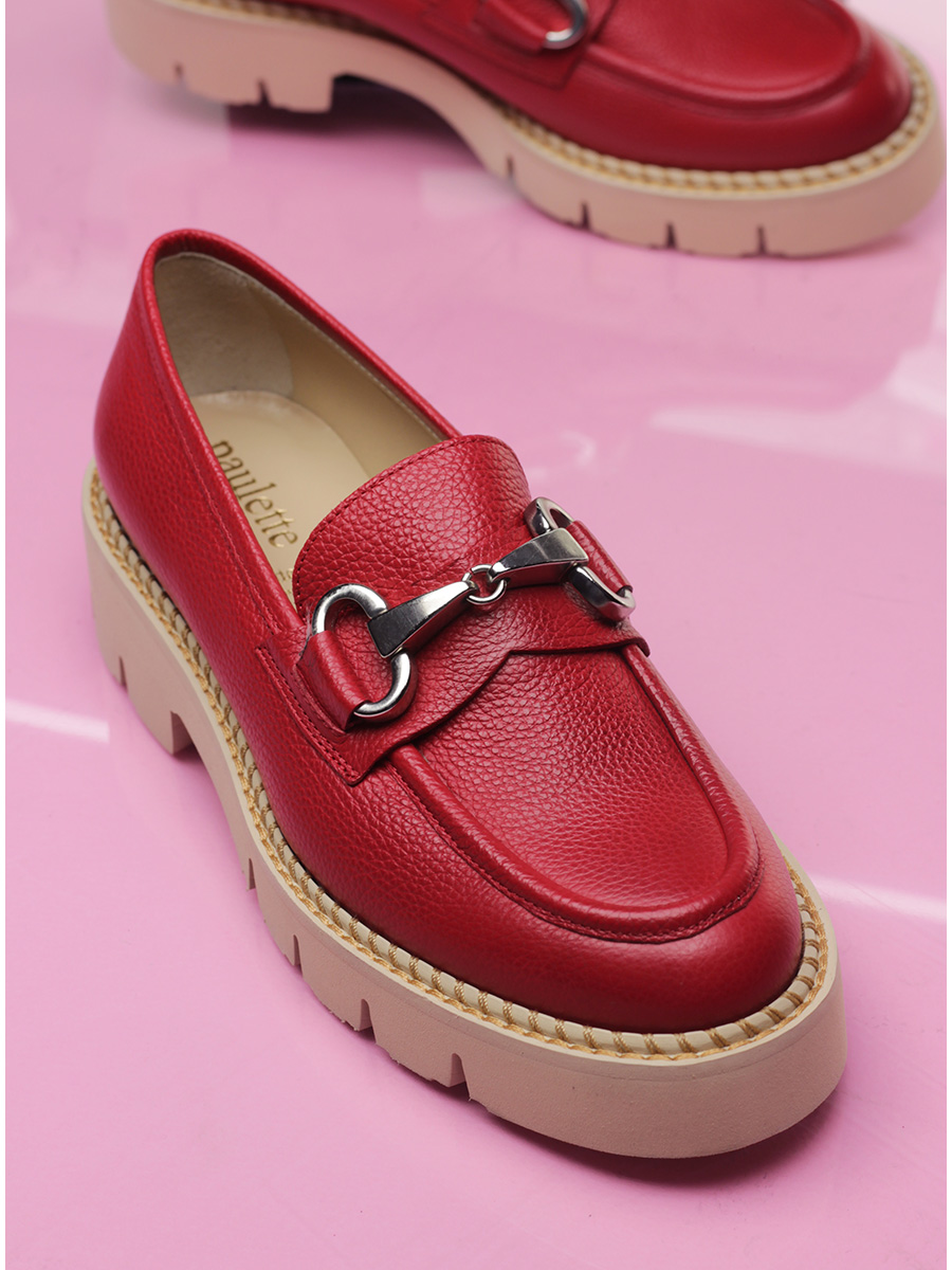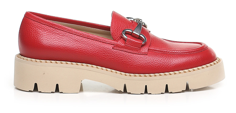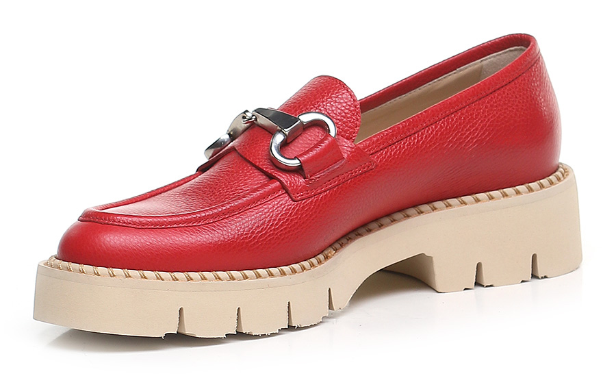 Leather shoe with front clamp. Rubber sole. Heel height 40mm, platform 25 with 15mm ledge.