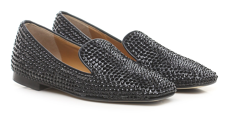 Leather shoe with rhinestones and leather and rubber sole. Heel height 15mm.